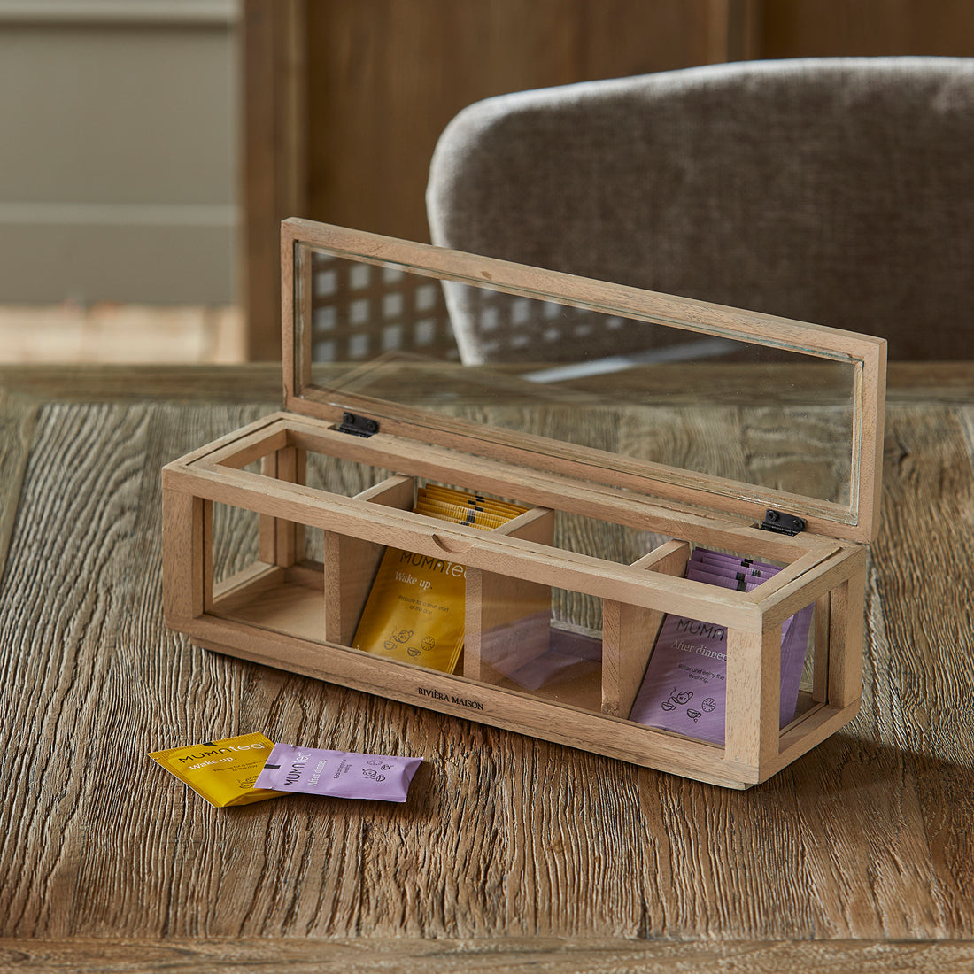 Riviera Maison Theedoos 4 Vaks Naturel - Mystic Harbor - Hout