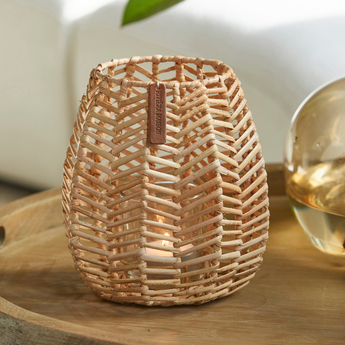 Riviera Maison theelichthouder Naturel - Hexagon - rotan, Glas