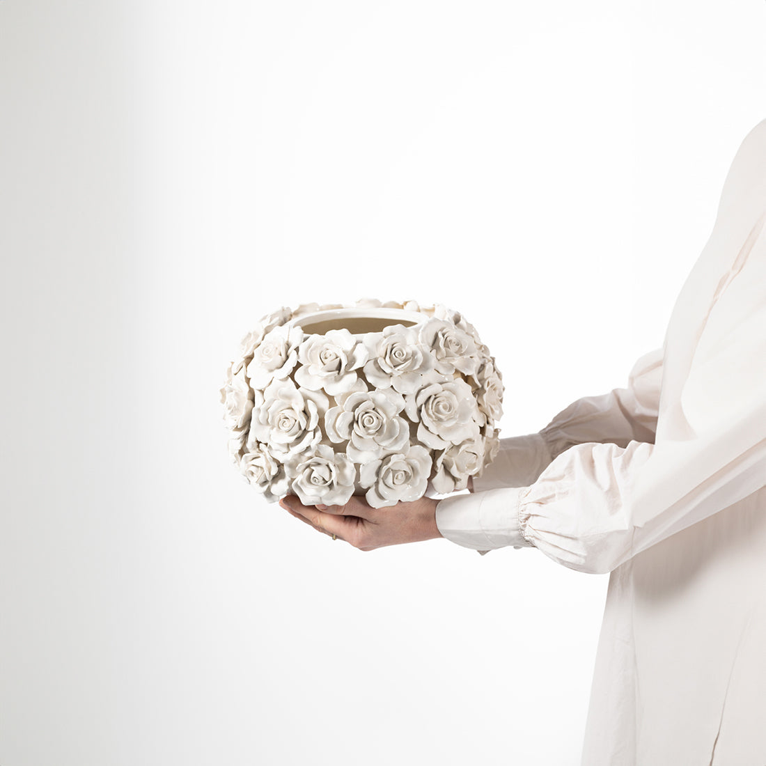 Riviera Maison Vaas Wit - Rose - Aardewerk (ØxH) 30x20