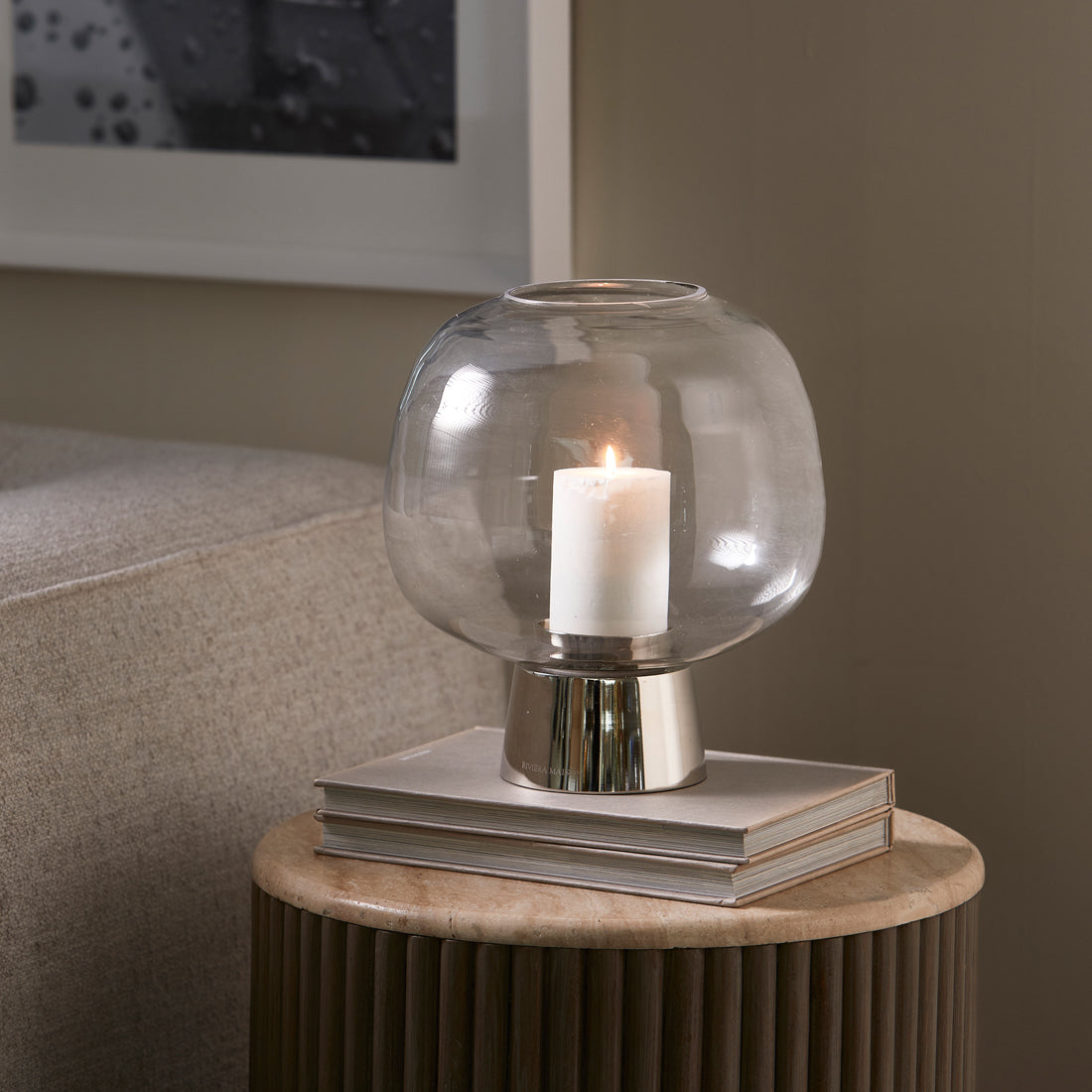 Riviera Maison Windlicht Zilver - Amadora - Glas (ØxH) 25x27.5