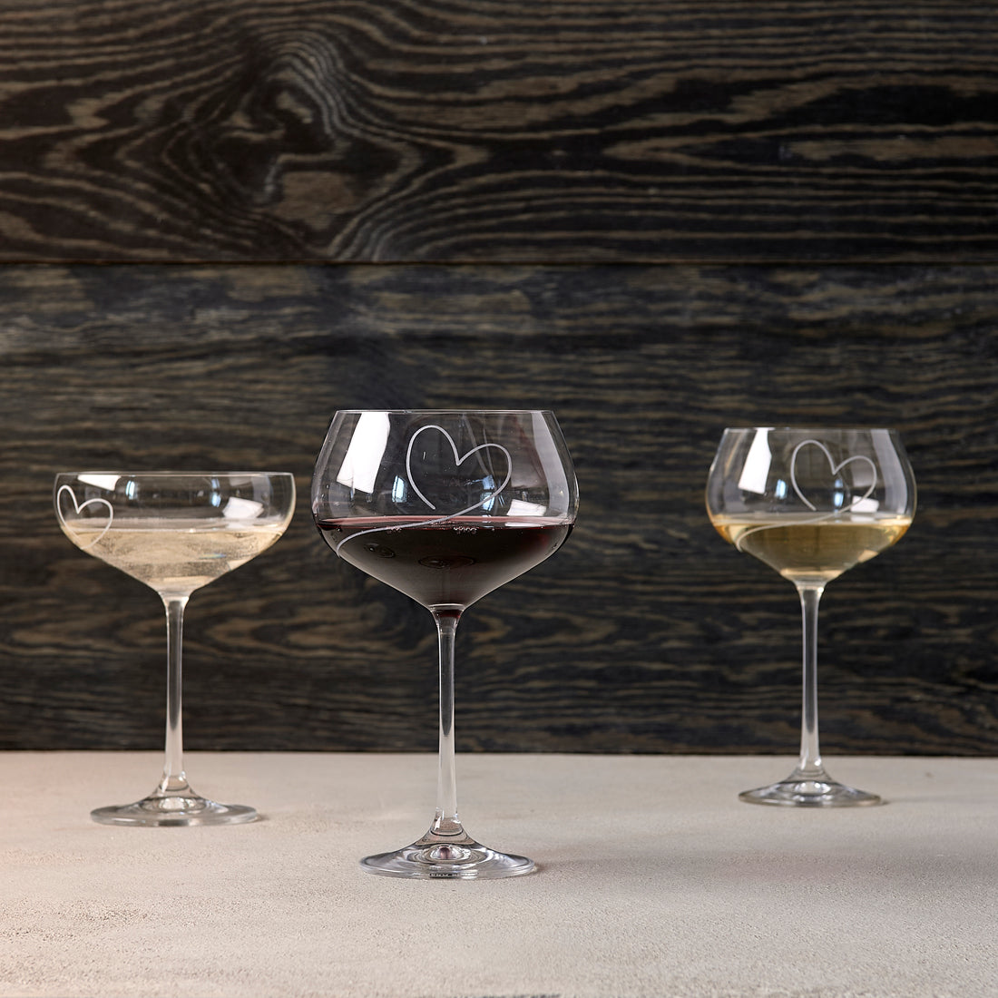 Riviera Maison witte wijnglas met gegraveerd hart - With Love