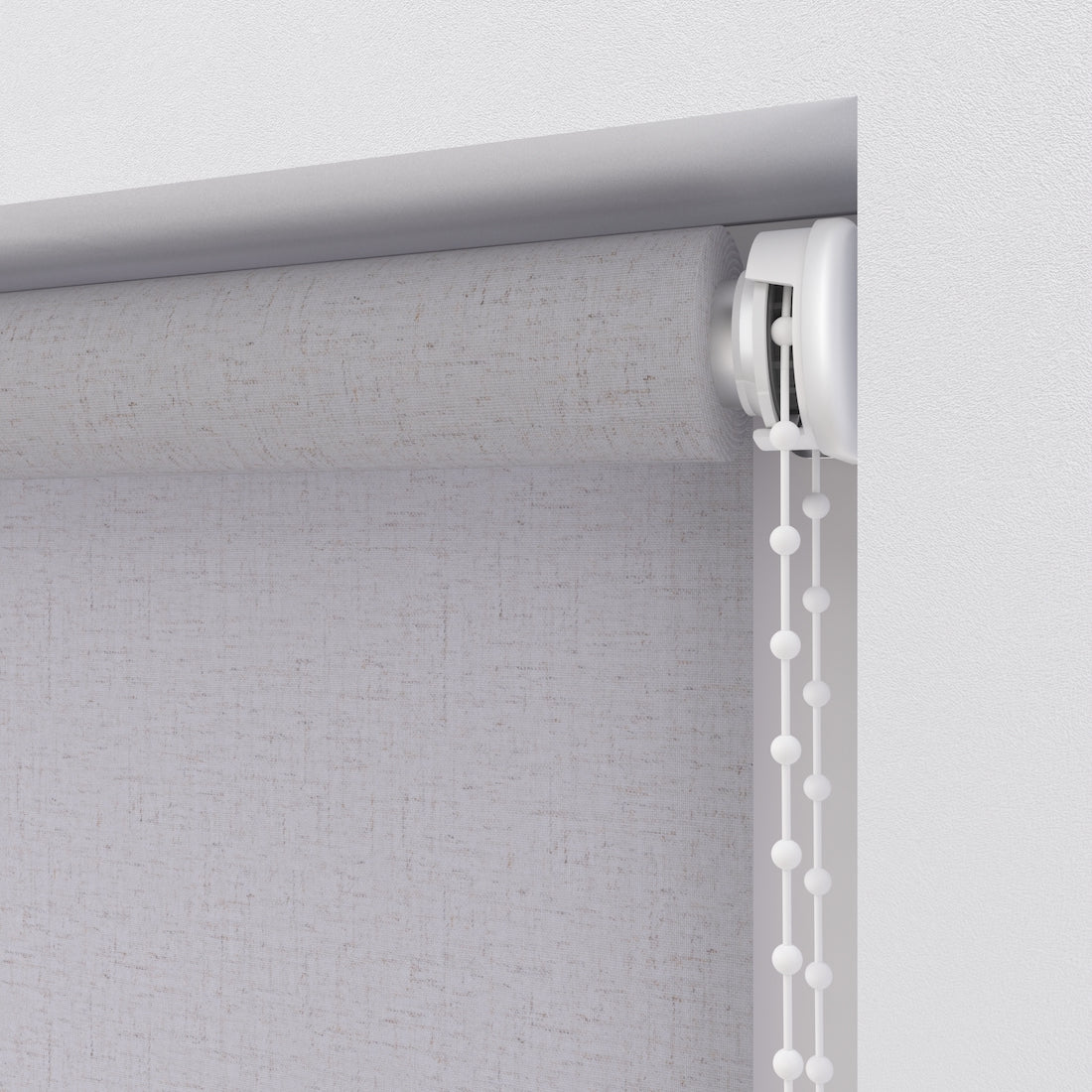 Door de fijngeweven structuur van de stof krijgt het rolgordijn een natuurlijke uitstraling. De stof van het rolgordijn is gemaakt van 50% polyester, 27% linnen en 23% viscose. De montagesteunen en de ketting zijn van kwalitatief kunststof. De buis van het rolgordijn is van aluminium.