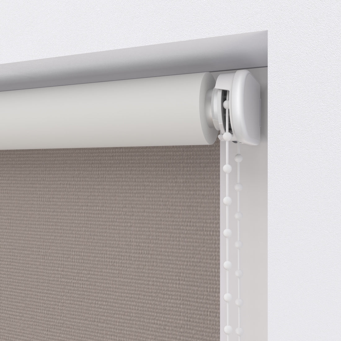 Alle benodigdheden voor montage worden meegeleverd. De montagesteunen bevestig je tegen je kozijn, muur of plafond. Vervolgens plaats je de rol met stof in de montagesteunen en klik je deze vast. De ketting kan zowel links als rechts geplaatst worden. Met de kindveiligheidsclip kun je de ketting aan het kozijn bevestigen, zo is je rolgordijn kindveilig.