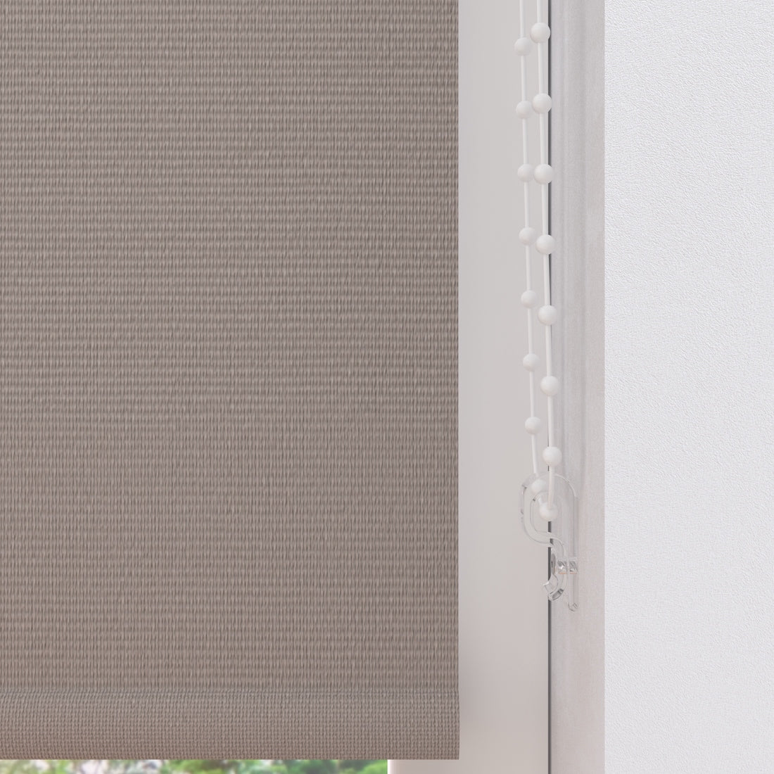 De stof heeft een fijne, natuurlijke structuur en bestaat uit 100% polyester. Hierdoor is het rolgordijn ook geschikt voor vochtige ruimtes en eenvoudig af te nemen met een lichtvochtige doek. De montagesteunen en de ketting zijn van kwalitatief kunststof. De buis van het rolgordijn is van aluminium.