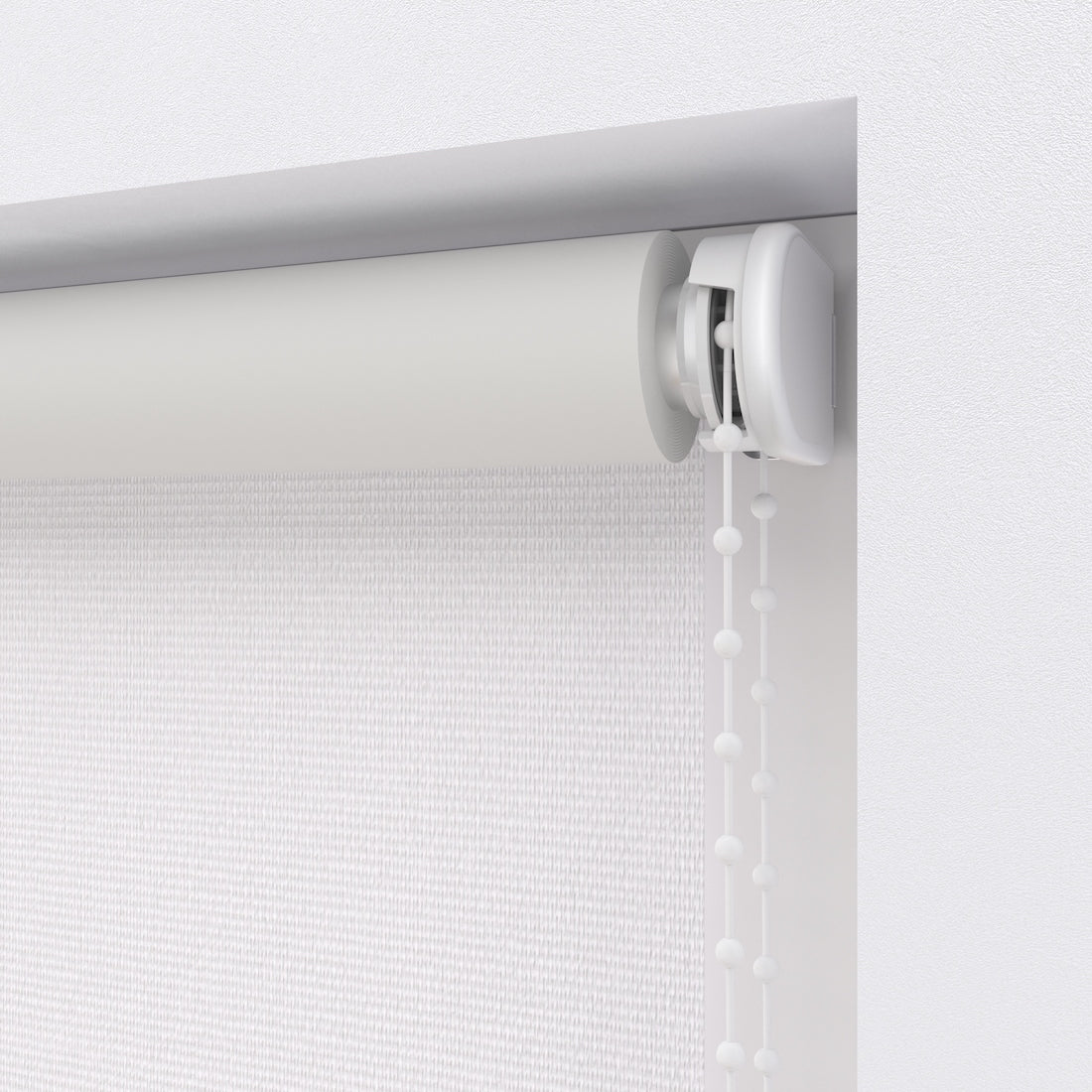 Alle benodigdheden voor montage worden meegeleverd. De montagesteunen bevestig je tegen je kozijn, muur of plafond. Vervolgens plaats je de rol met stof in de montagesteunen en klik je deze vast. De ketting kan zowel links als rechts geplaatst worden. Met de kindveiligheidsclip kun je de ketting aan het kozijn bevestigen, zo is je rolgordijn kindveilig.