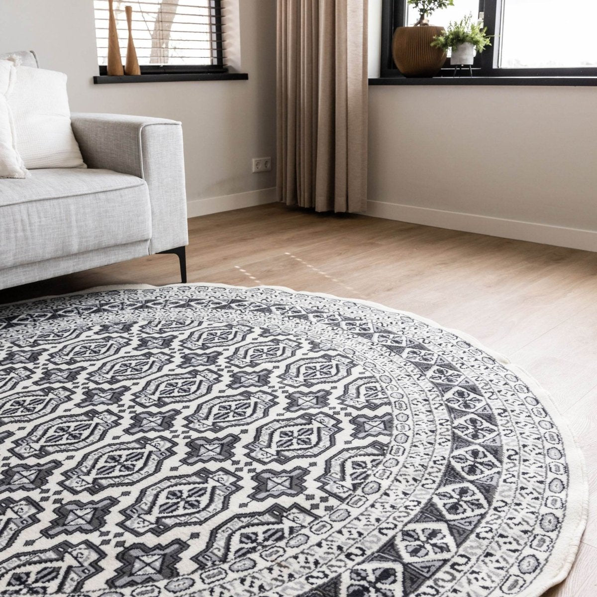 Rond vintage vloerkleed Marad Grijs|Antraciet Interieur05