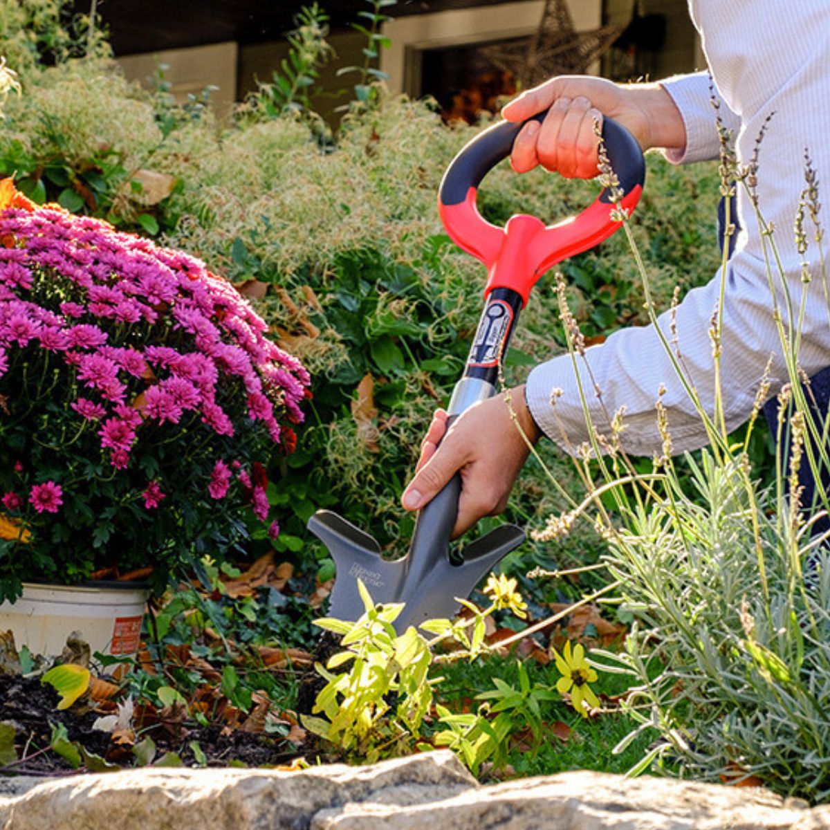 Het spitse blad met scherpe zaagtanden is sterk en zeer duurzaam, omdat het gemaakt is van koolstofstaal. Dit is een zeer slijtvast en geschikt materiaal voor veelzijdig gebruik. Bovendien is het metalen handvat is sterker dan een houten handvat. Ondanks het staal blijft de schep lichtgewicht en is hij gemakkelijk te hanteren dankzij de ronde 360° handgreep. Het handvat glijdt niet weg, zelfs niet bij krachtig gebruik. Tuinieren wordt eenvoudig en leuk!