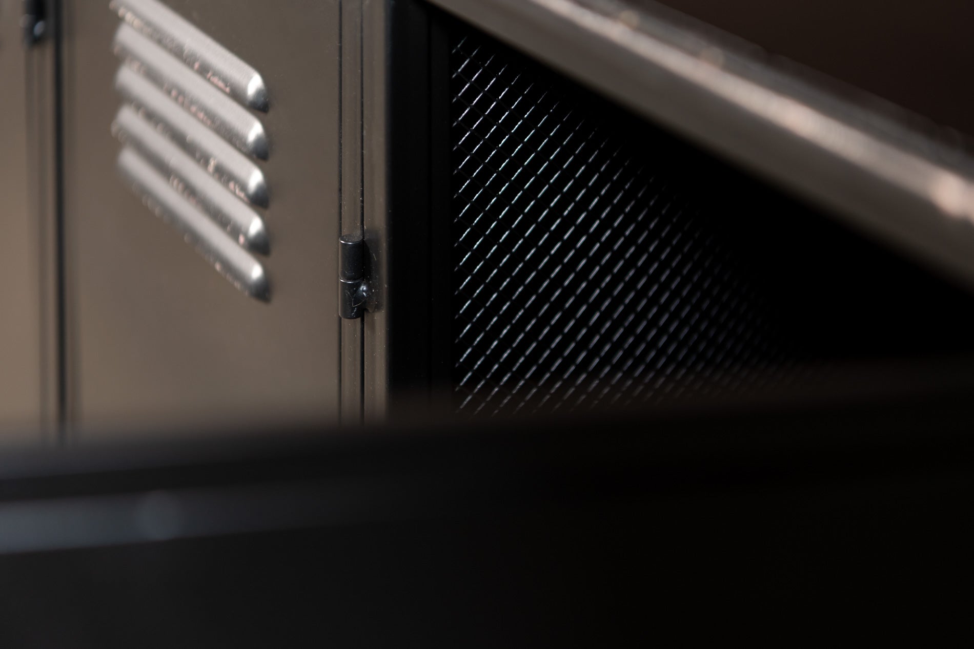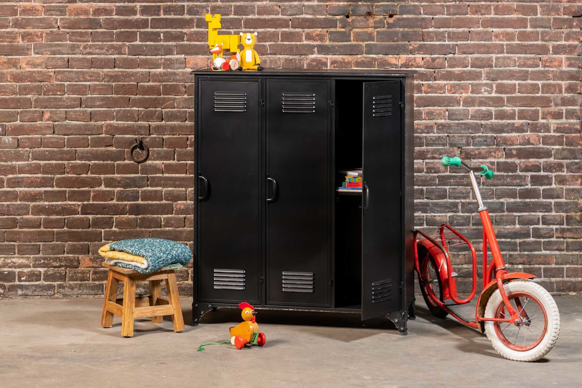 Rauw en stoer, maar stiekem ook best lief door z’n toegankelijke formaat. Dat is de matzwarte driedeurs lockerkast van Rootsmann! Met zijn opvallend grote binnenmaten; verdeeld over zes ruime vakken van 26,5 cm breed en 46 cm hoog, wordt hij je beste vriend in je hal, woonkamer, kantoor of welke plek dan ook! Het matzwart van de deurtjes wordt subtiel ondersteund door de onderliggende roestkleur. Zo vóelt de locker alsof een fabrieksarbeider er gisteren nog zijn lunchpakketje in opborg, terwijl hij in werkelijkheid fris en fruitig nieuw is! Dat is ook meteen de kracht van Rootsmann… De vette, rauwe, shabby look van ambachtelijke historie, met de frisse, schone, roestvrije toch van nu. New Vintage, noemen we het; de sfeer van toen; het comfort van nu. Voor de vorm, het materiaal en vooral de details van deze kast, haalden we onze inspiratie uit Italië. Daar, in een oude schoenenfabriek, vonden we een kleedkamer vol met deze kasten uit de Industriële Revolutie; nog volop in gebruik. De hoogwaardige industriële details, zoals de degelijke stalen legplanken, de stoere afscheidingsrasters en subtiel gebogen ventilatieroosters inspireerden ons tot het maken van deze compactere, schonere variant, zodat hij perfect past in jouw huis! Onze Edwin levert deze kast keurig bij je thuis af en zet hem precies daar neer waar jij hem hebben wilt, keurig met een rubbertje onder de poten om je vloer te beschermen!