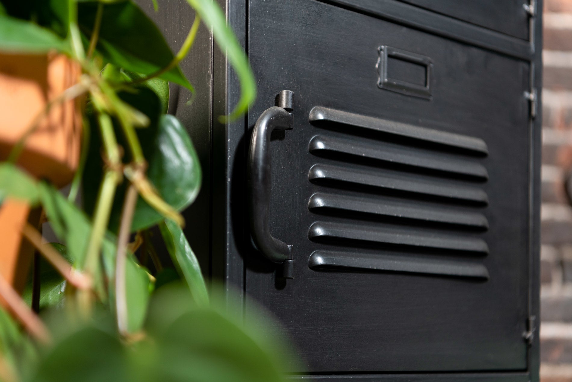 Door het materiaal dat we gebruiken, hoef je niet bang te zijn voor roest, zelfs niet als jij vindt dat deze locker in je badkamer hoort; kan gewoon! Deze new vintage lockerkast is precies hoe een lockerkast zou moeten zijn: een niet te keurig lakje, fijne greepjes, strakke roostertjes, oude scharniertjes en natuurlijk de kenmerkende labelhoudertjes. Wij vinden ze geweldig en hopen dat ook jij er verliefd op wordt!