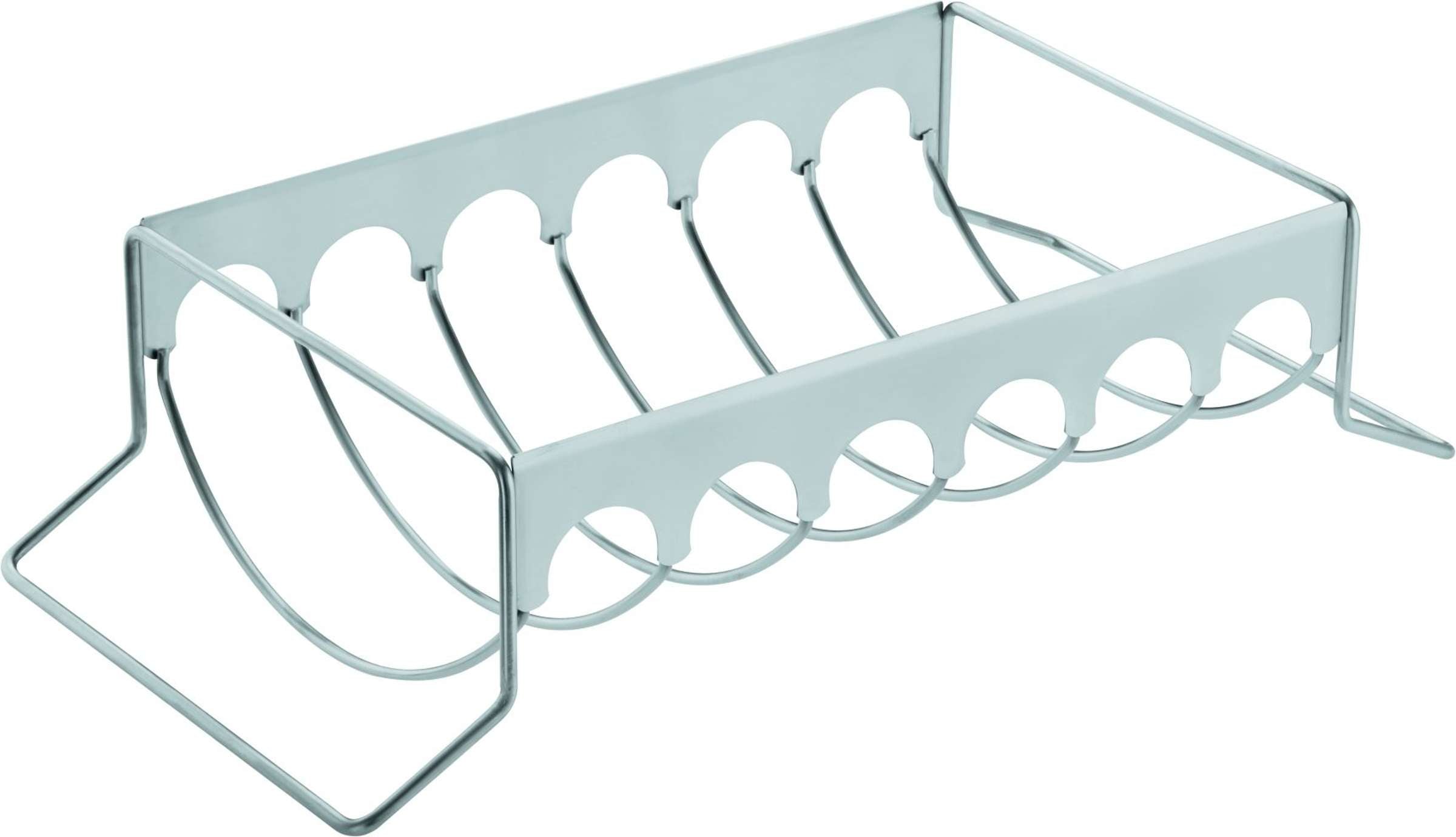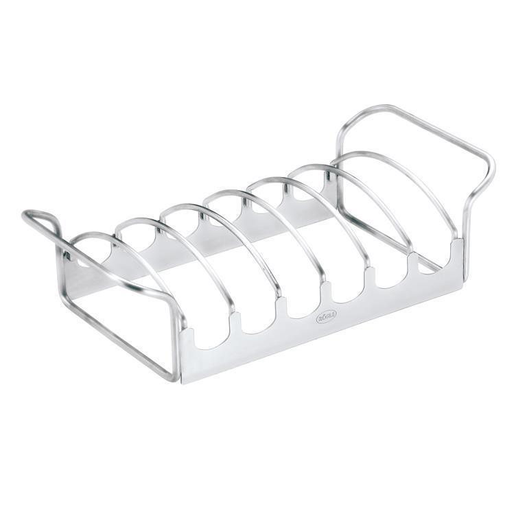 Barbecue Braad-/Rib-rek - Klein van het merk Rösle. Met dit rek bereidt u de meest heerlijke karbonades en spare-ribs op de barbecue! Dit rek biedt plaats aan 6 ribbetjes tegelijk zodat iedereen tegelijk kan genieten!