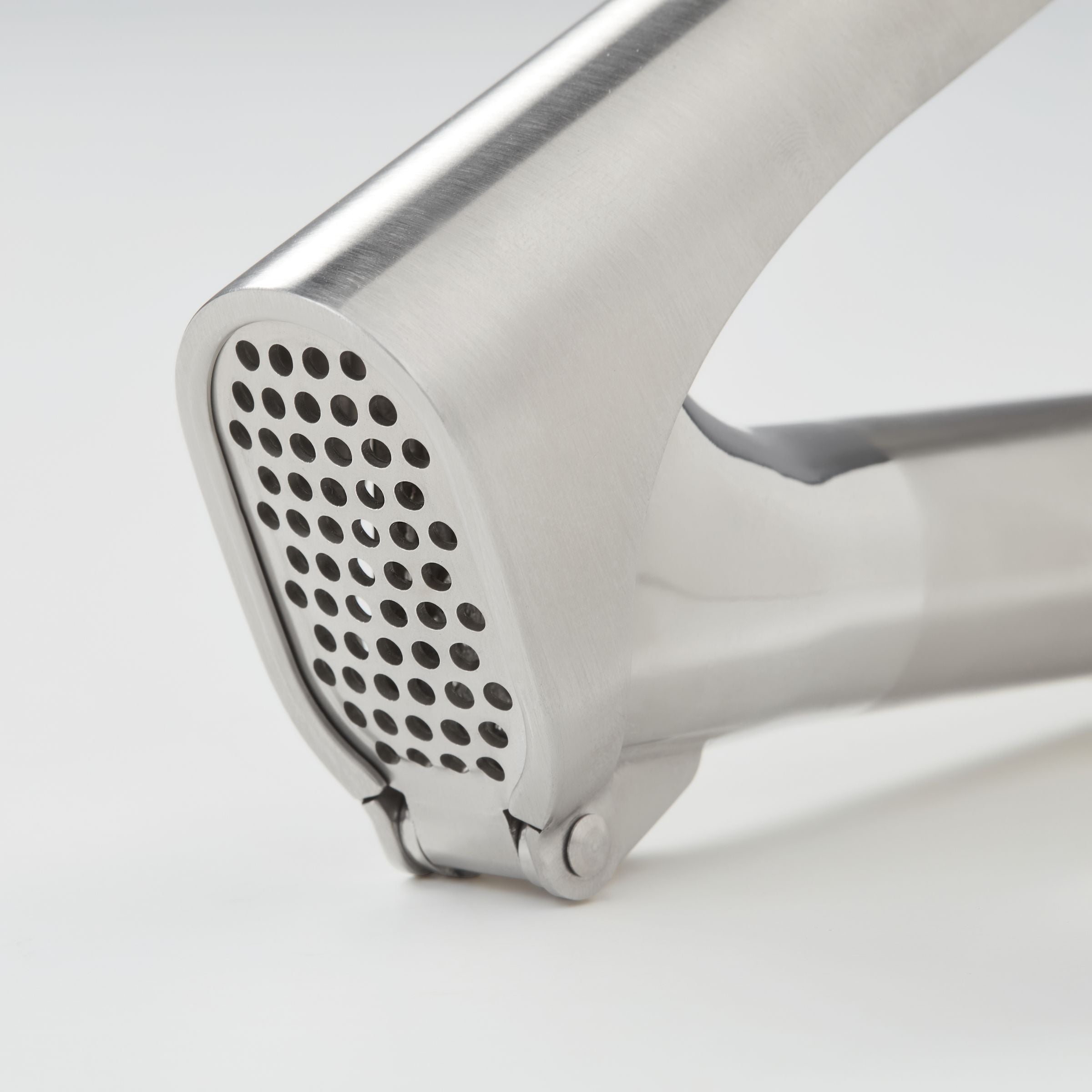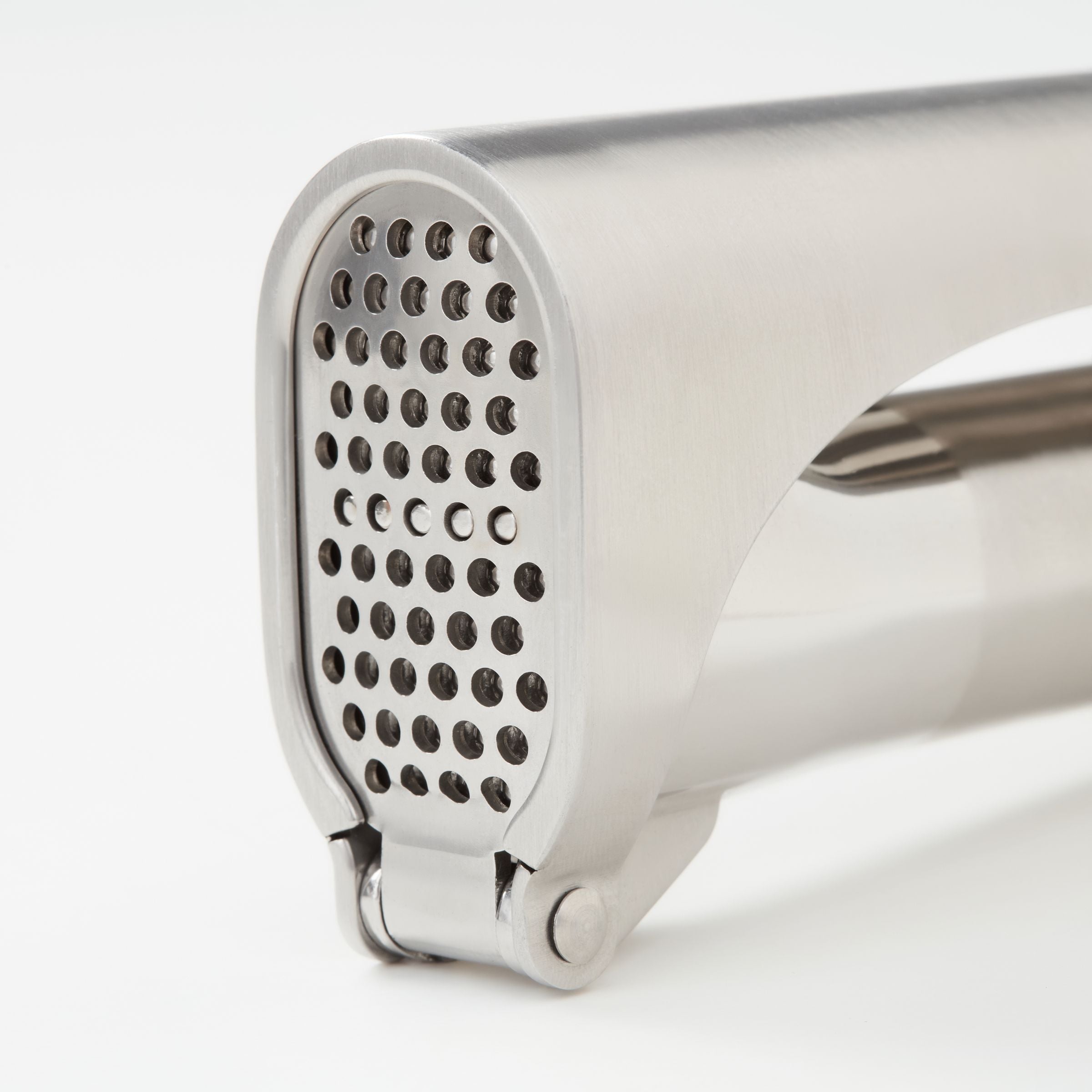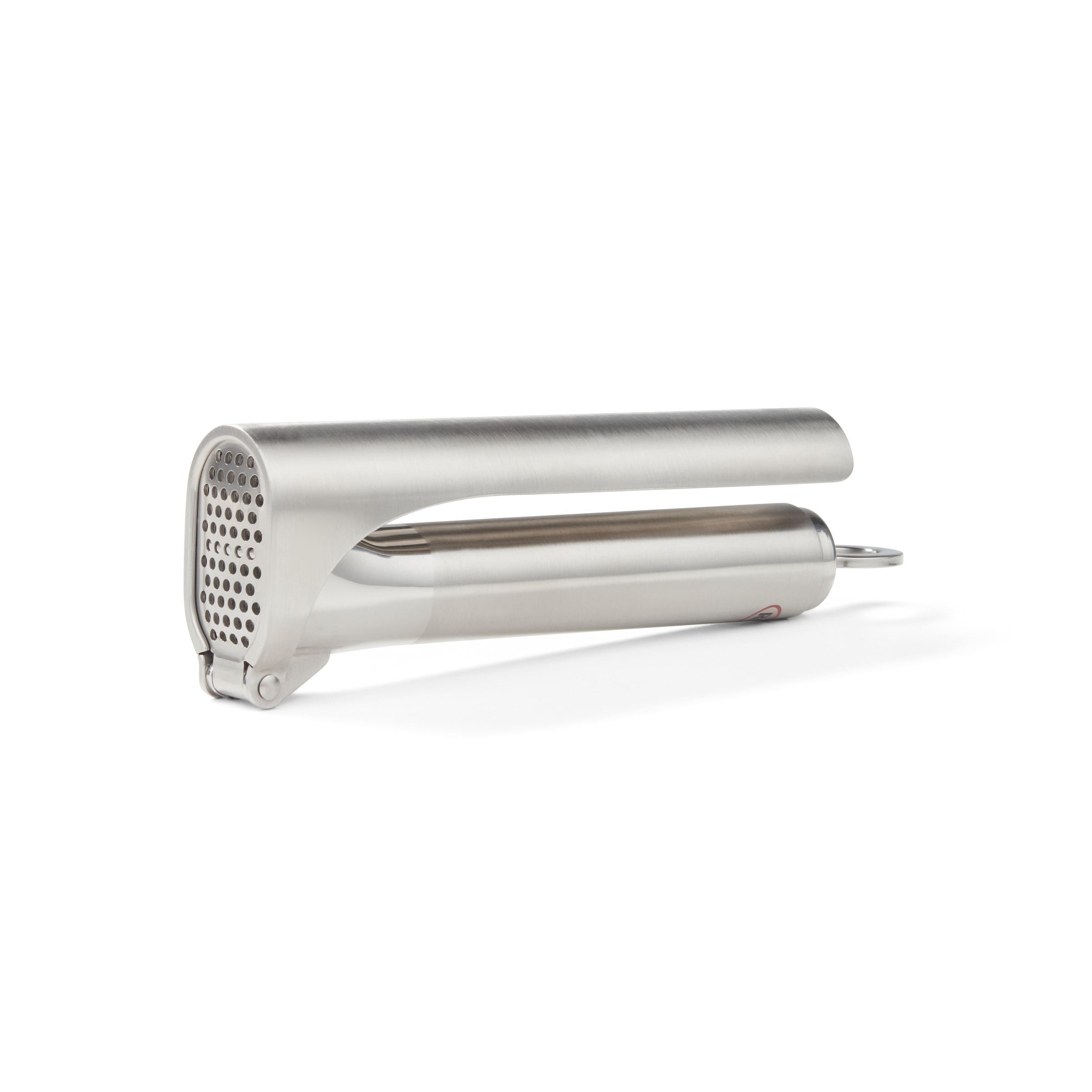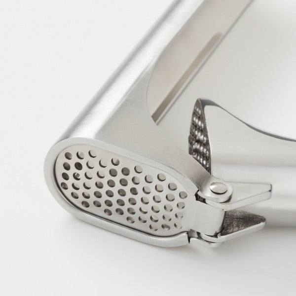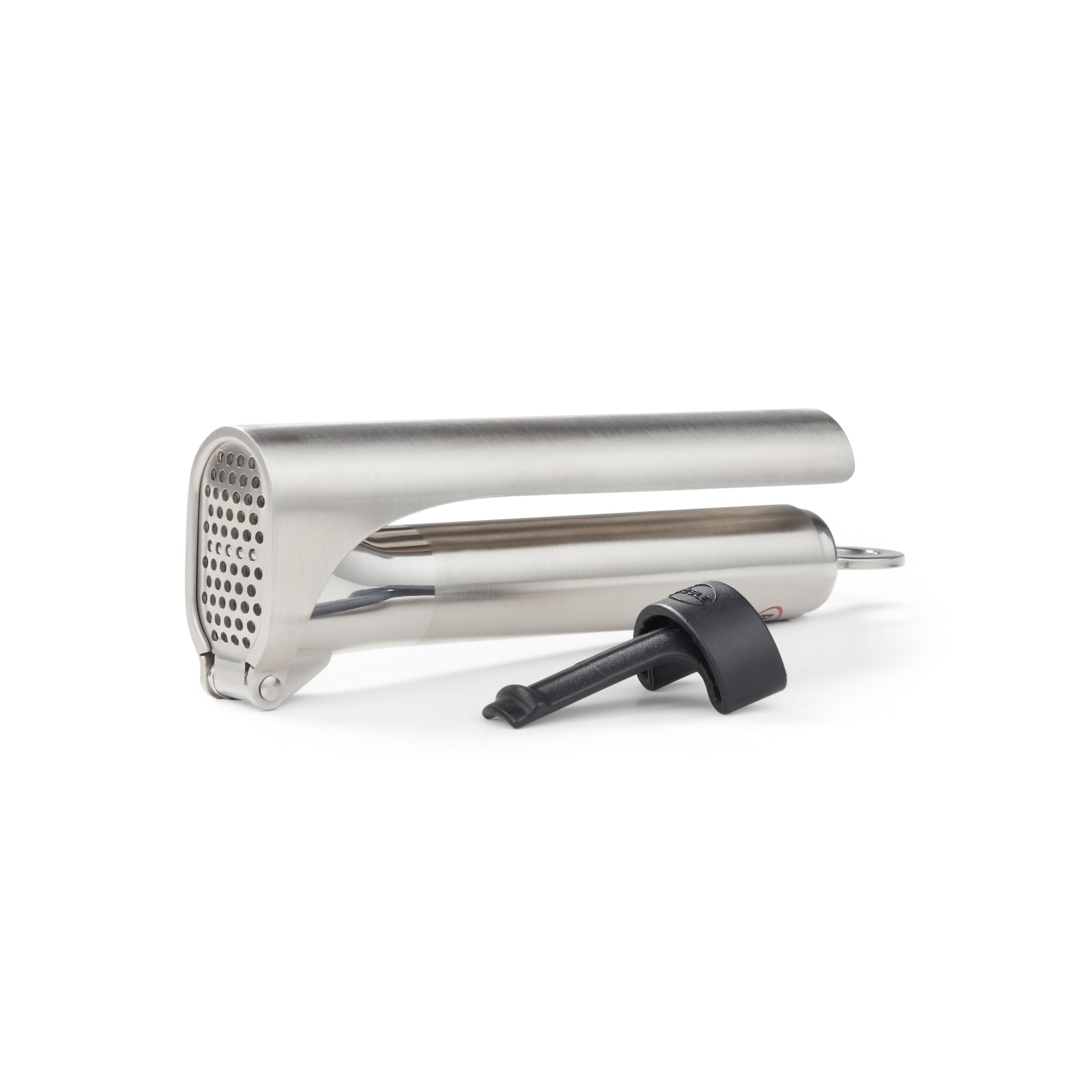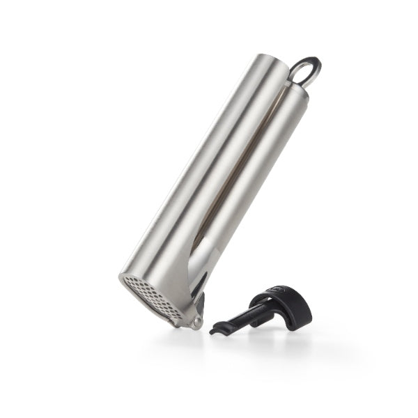Deze prachtige roestvrijstalen knoflookpers van Rösle is een must have voor iedere kookliefhebber, wie graag zijn keuken wilt uitbreiden met mooi en handig kookgerei. De pers heeft een elegant design en kan door de platte onderkant ook neergelegd worden op het aanrechtblad en is zodoende ook liggend te vullen. De knoflookpers is dermate krachtig dat deze ook ongepelde teentjes knoflook of verse gember tot een mooi fijn resultaat kan persen. Klaar met koken? Dan is de pers gemakkelijk schoon te maken en zelfs te reinigen in de vaatwasmachine. Wij raden echter wel aan dit niet te vaak te doen, zo blijft de pers net zo mooi als op de dag van aanschaf.
