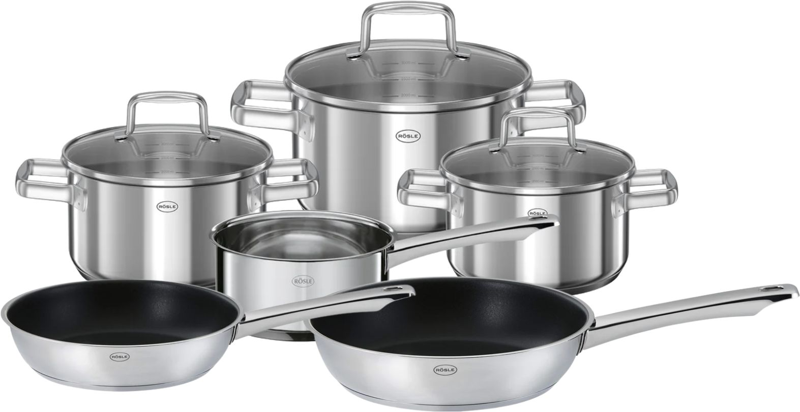 Rosle Pannenset Moments - Kookpannen + Deksels, Steelpan & Koekenpannen ø 20 & 28 cm - 6 Delig
