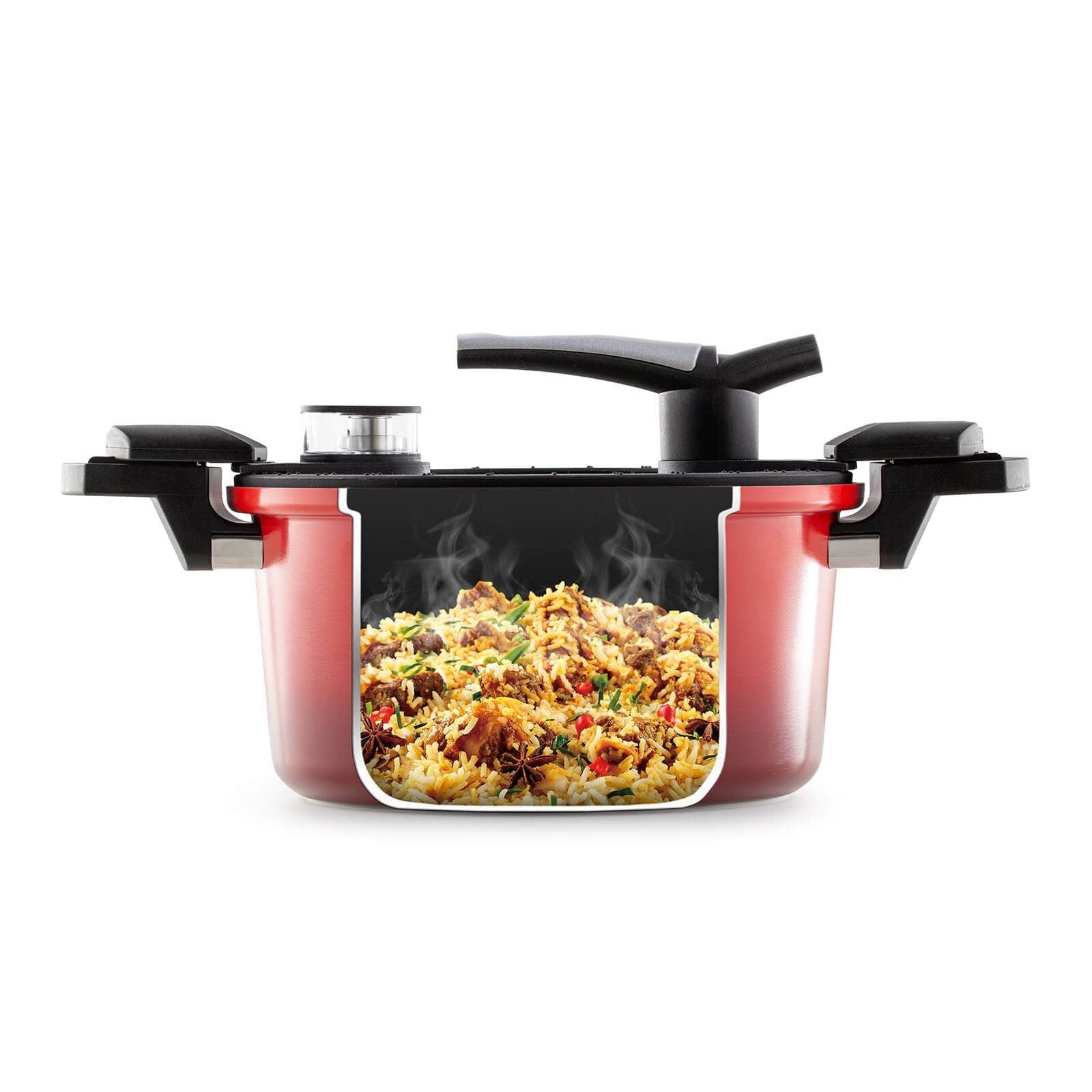Met 'slimme' deksel In tegenstelling tot andere snelkookpannen heeft de Rosmarino pan een slimme deksel, door deze deksel kan er op lagere druk worden gekookt. De deksel is makkelijk op te tillen, zo kunt u makkelijk ingrediënten toevoegen of de smaak van uw gerecht controleren.