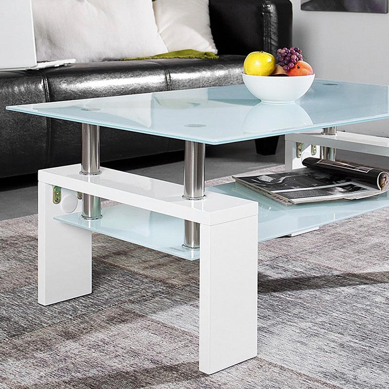 Salontafel Alana, glanzend wit decor, vervaardigd uit spaanplaat en glas.