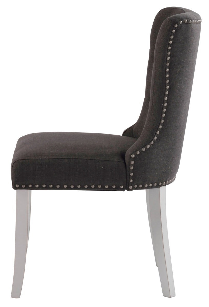 Ook aan de afwerking is gedacht Adele is voorzien van een luxe uitstraling Beide kanten van de stoel zijn versierd met decoratieve klinknagels rondom de leuning en het zitkussen De hoogwaardige gecapitonneerde kussens zijn gemaakt van stof en geven Adele een romantische look en feel