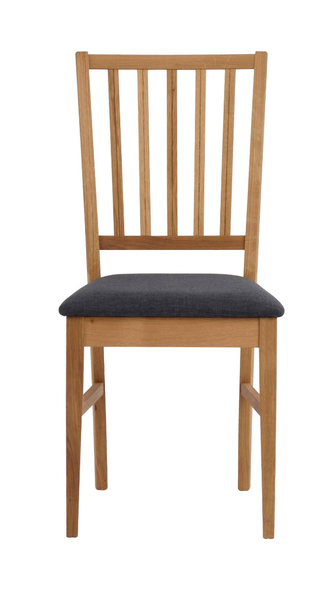 Stijlvolle spijlenstoel met grijs gestoffeerde zitting