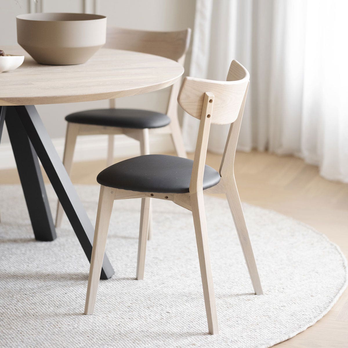 Rowico Home Ami Eikenhouten Eetkamerstoel Whitewash - Zwart Zitkussen