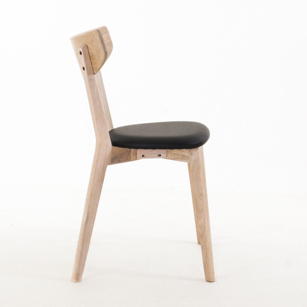 Ami is vervaardigd van massief eikenhout en de ronde rugleuning geeft goede steun. Bovendien zorgt de beklede zitting van PU leer voor urenlang zitplezier. Door zijn tijdloze uiterlijk zul je niet snel uitgekeken raken op de stoel en is deze bovendien breed inzetbaar. Geef zowel je woon-, -eet, als slaapkamer een Scandinavische touch met deze comfortabele en stijlvolle stoel. De eetkamerstoel is in meerdere kleuren beschikbaar, er is dus altijd een kleur die bij jou past!