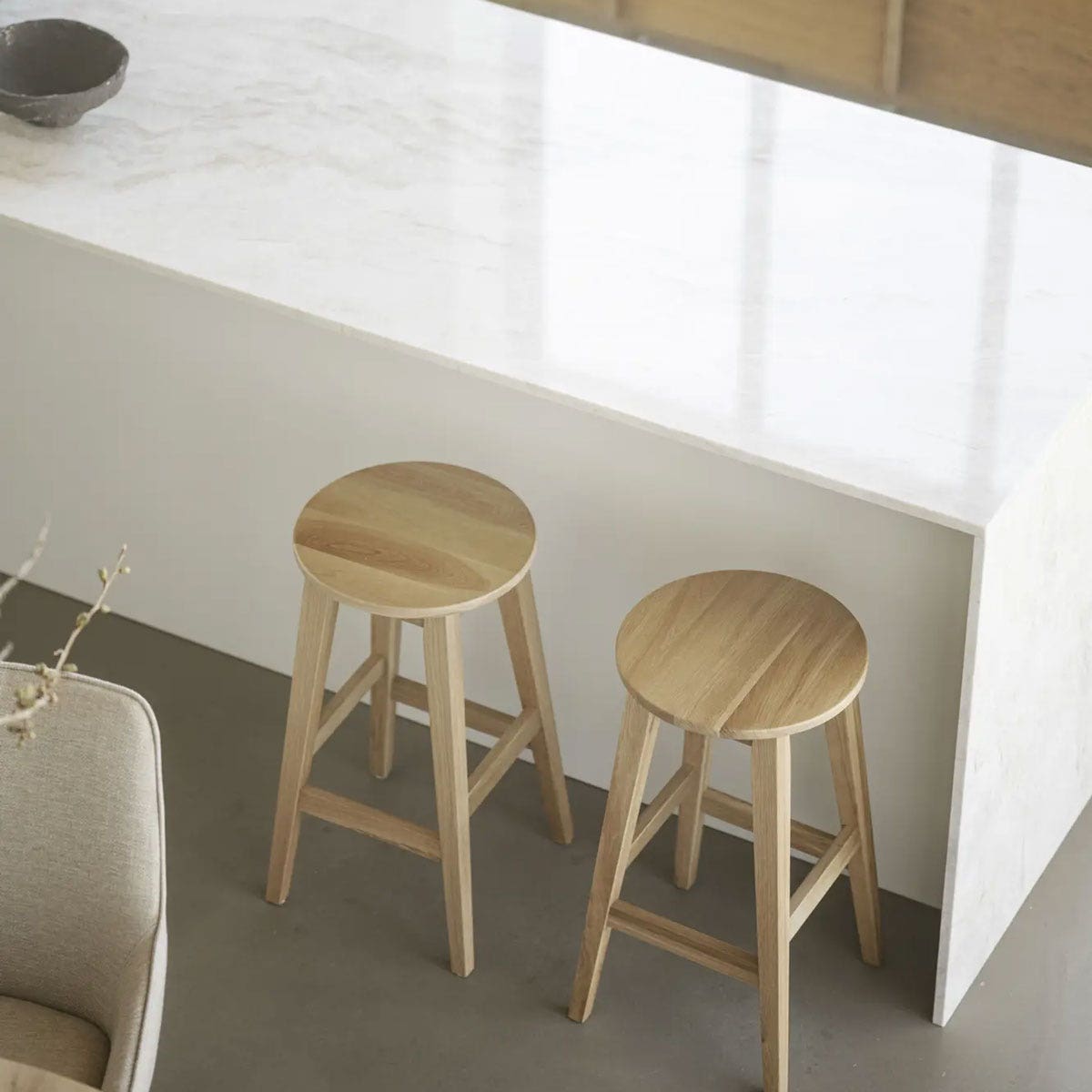 De Austin barkruk is gemaakt van eikenhout en is afgewerkt met een laklaag. Het stabiele onderstel met vier schuine poten wordt bijeengehouden door een voetensteun aan alle vier zijden, wat ook voor extra zitcomfort zorgt. De barkruk heeft een platte ronde zitting waarvan de zithoogte 65 cm is. Deze hoogte is ideaal voor aan een kookeiland. De breedte en diepte van deze barkruk zijn beide 35 cm. De Austin barkruk is verkrijgbaar in twee uitvoeringen: naturel gelakt eikenhout en zwartgelakt eikenhout. Deze praktische en stijlvolle kruk met een Scandinavisch ontwerp zal in elke keuken goed staan.