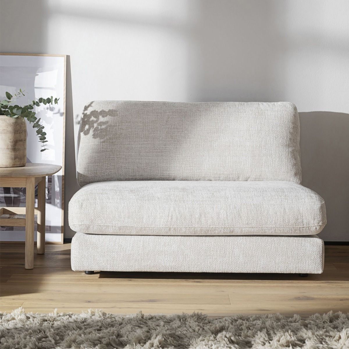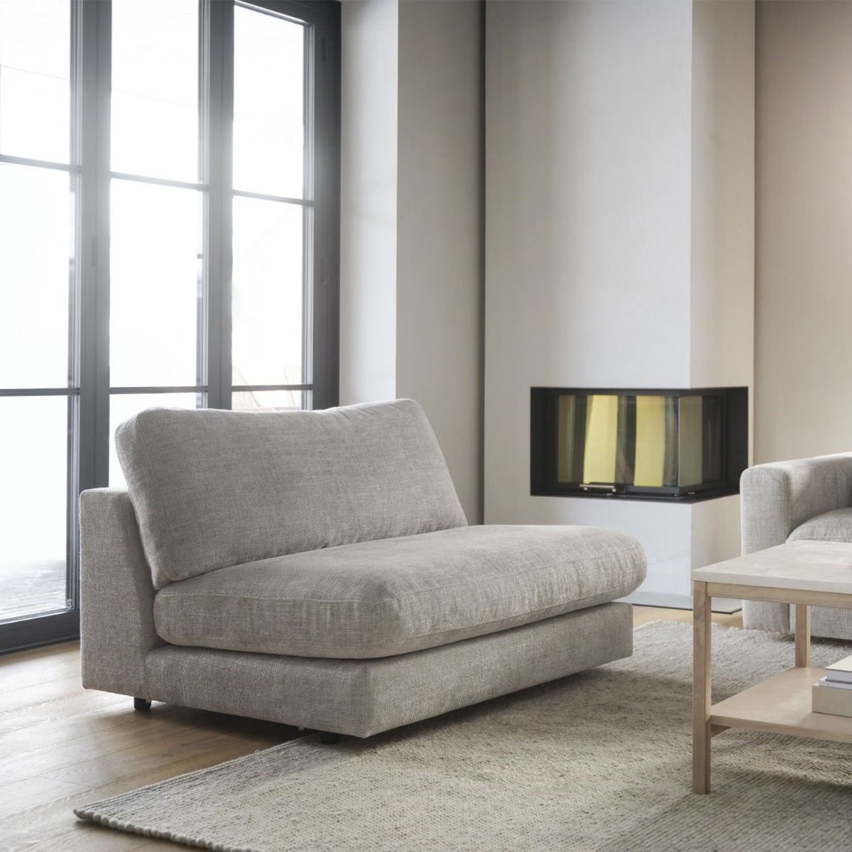 Lichtgrijze fauteuil zonder armleuningen