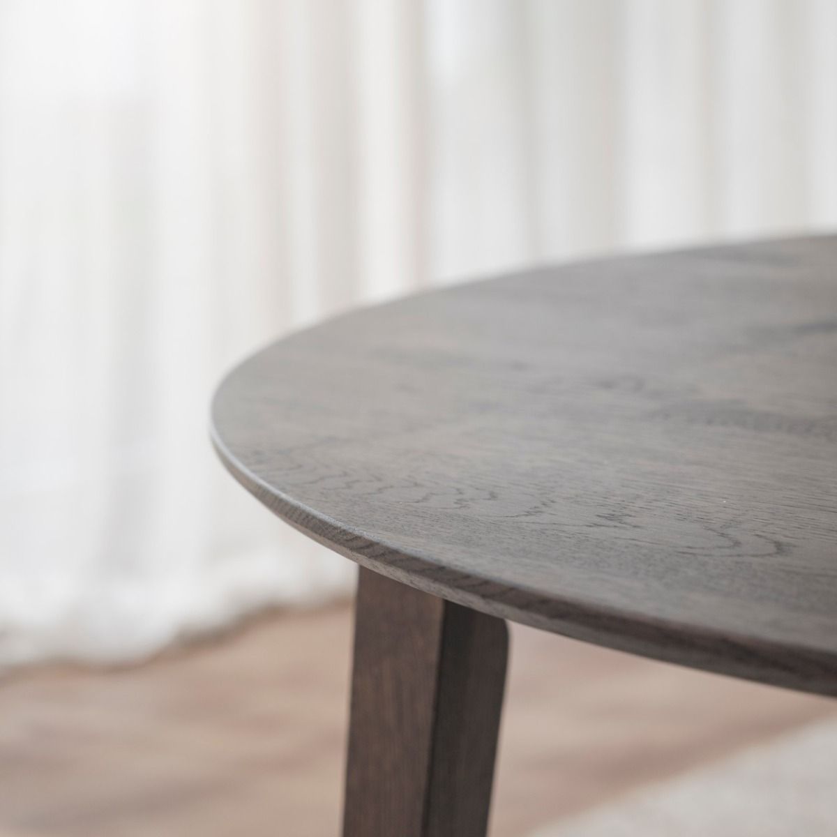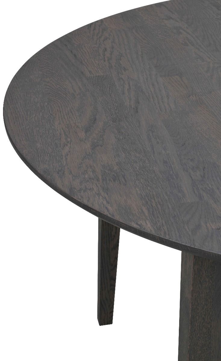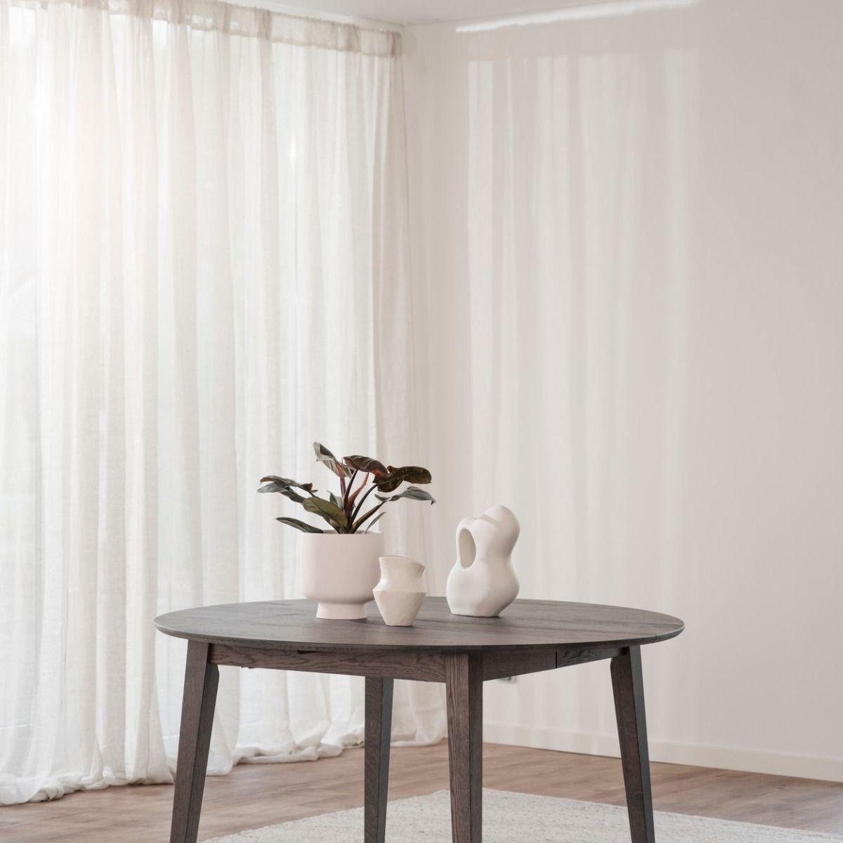 De ronde Rowico Filippa 4/6-persoons eettafel is gemaakt van bruin massief eiken Het tafelblad is gevingerlast en gelakt waardoor de eettafel een stoere uitstraling heeft en ervoor zorgt dat de tafel makkelijk te onderhouden is Met het meegeleverde inlegblad verleng je de tafel tot een lengte van 165 cm!