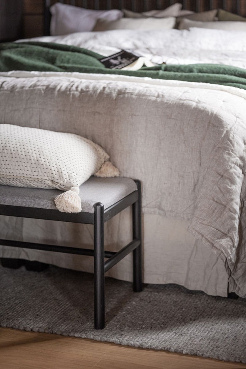 Rowico Home Milford eikenhouten bankje zwart - met zitkussen - 80 x 46