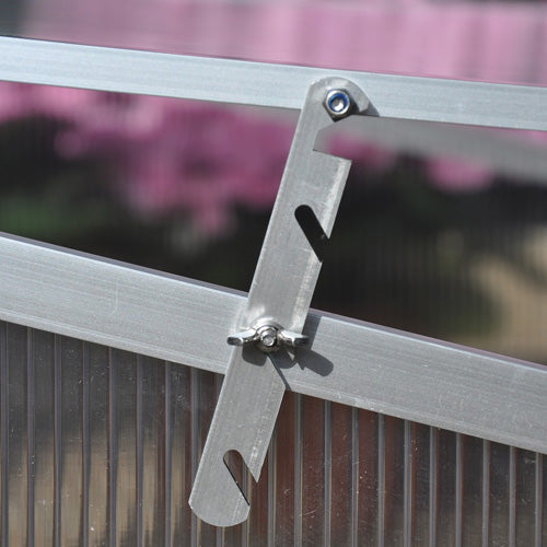 De Viola Broeikas van Royal wel heeft een klep die door middel van raamuitzetters en een borgmoer vastgezet kan worden. Op deze manier staat de klep open en kan hij tegen een windstootje.