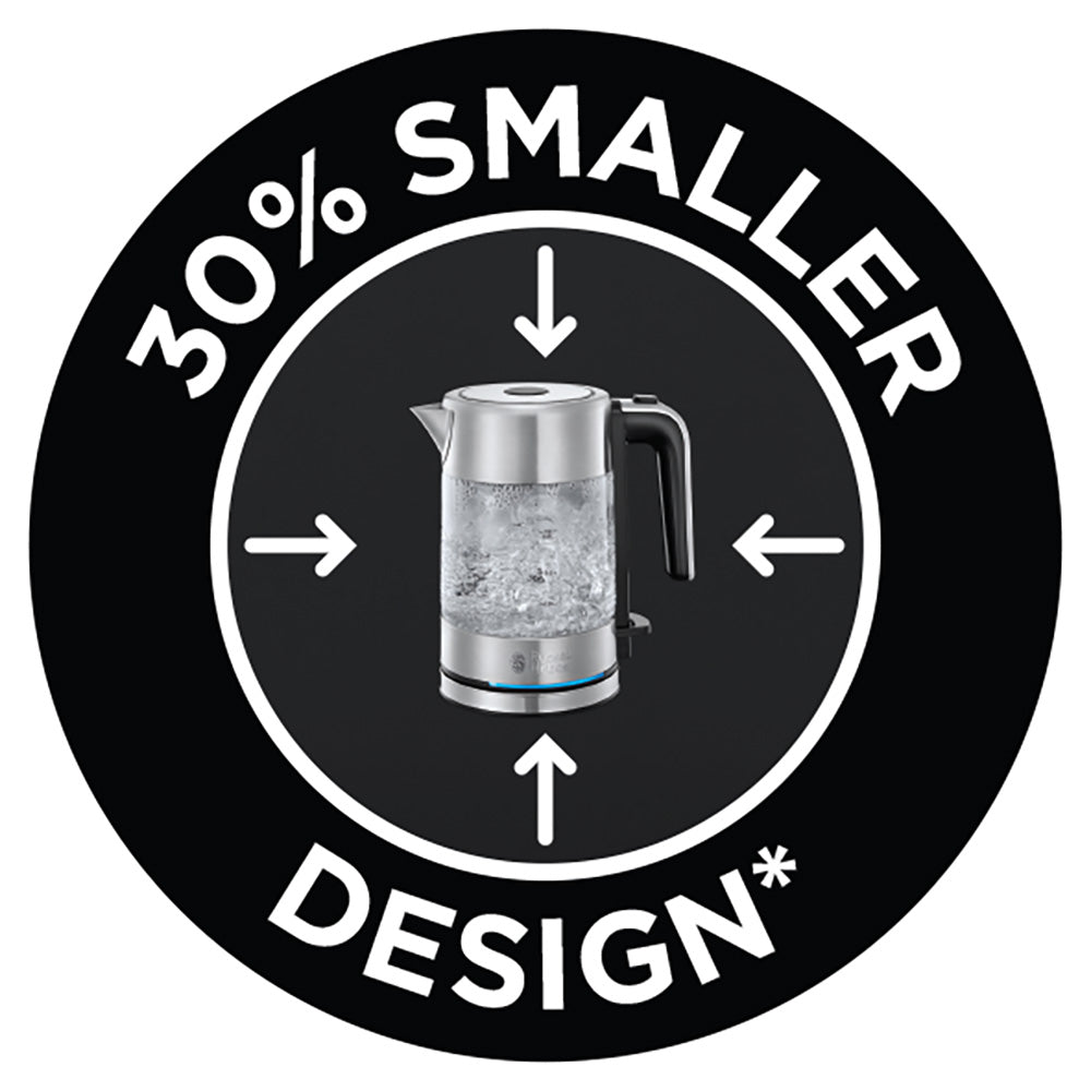 De Russell Hobbs Compact Home waterkoker neemt weinig ruimte in beslag. Door het compacte design is deze waterkoker ideaal als je beperkte ruimte hebt op het aanrecht of in de kast. Met deze waterkoker bespaar je tot wel 30% aan ruimte. Daarnaast beschikt de waterkoker over een indicator waarmee je precies kunt aflezen hoeveel water je nodig hebt voor één kopje thee. Door deze indicator bespaar je tot wel 60% aan energie.