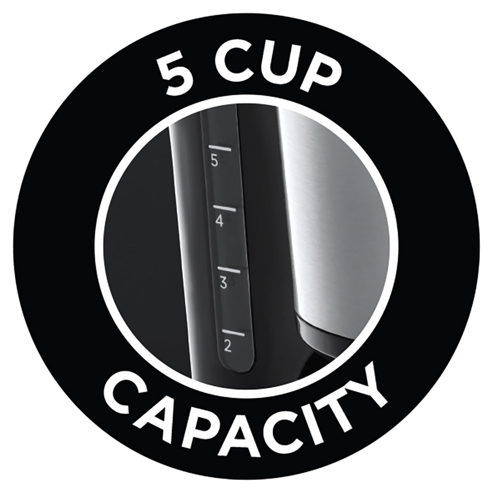 Russell Hobbs heeft een speciale serie ‘Compact Home’ waarbij de producten zowel ruimte als energie besparen. Dit koffiezetapparaat behoort ook tot deze serie van Russell Hobbs. In 7 minuten zet je een volle kan verse koffie, waar je tot 5 kopjes koffie uit kunt schenken. Door het compacte design bespaar je tot 38% aan ruimte op het aanrecht en tegelijkertijd tot wel 58% energie. Met de verlichte aan en uit knop weet je precies wanneer de koffie klaar is. Hij schakelt automatisch uit. Na gebruik zorgt het warmhoudplaatje ervoor dat je koffie warm blijft. Daarnaast is het antikalkfilter uitneembaar en makkelijk uit te spoelen.
