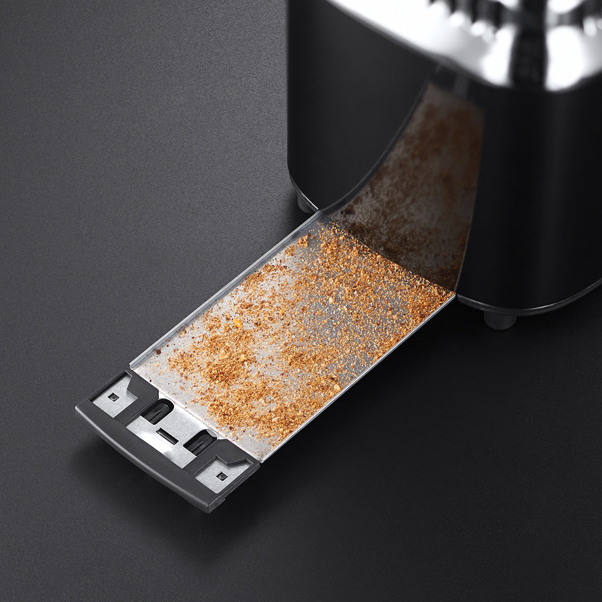Snel roosteren De ochtend is vaak een moment van drukte en dan is niets zo fijn als een ontbijt dat snel klaar is. Deze Russell Hobbs Retro Broodrooster is uitgerust met een snelle roostertechnologie en heeft aan de voorzijde een afloopklok zodat je precies kunt zien hoe lang je broodjes nog moeten roosteren. Wil je toch even checken hoe bruin je bammetjes al zijn? Met de Lift & Look-functie controleer je je toast zonder het programma te onderbreken. Geen kruimels Je keukenblad schoon houden is natuurlijk wel zo prettig. De broodrooster is voorzien van een geïntegreerde kruimellade waarin je kruimels en stukjes opvangt zodat je deze gemakkelijk weg kunt gooien. Extra handig: de broodrooster is uitgerust met een broodjeswarmer waardoor je je croissantjes, pistoletjes of andere broodjes goed warm houdt!