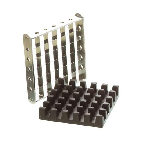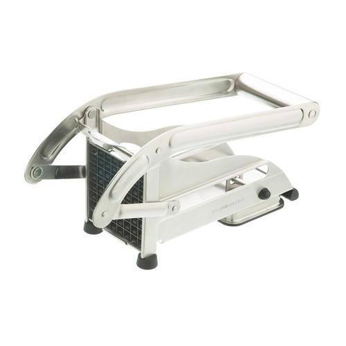 RVS patatsnijder / fritessnijder met 2 snij-inzetten. Deze patatsnijder van Masterclass is vervaardigd van rvs en heeft zowel een snij-inzet voor Franse frietjes (64-gaats-mes) als voor de Vlaamse frites (36-gaats-mes). Met de zuignap kan de patatsnijder worden bevestigd aan het werkblad