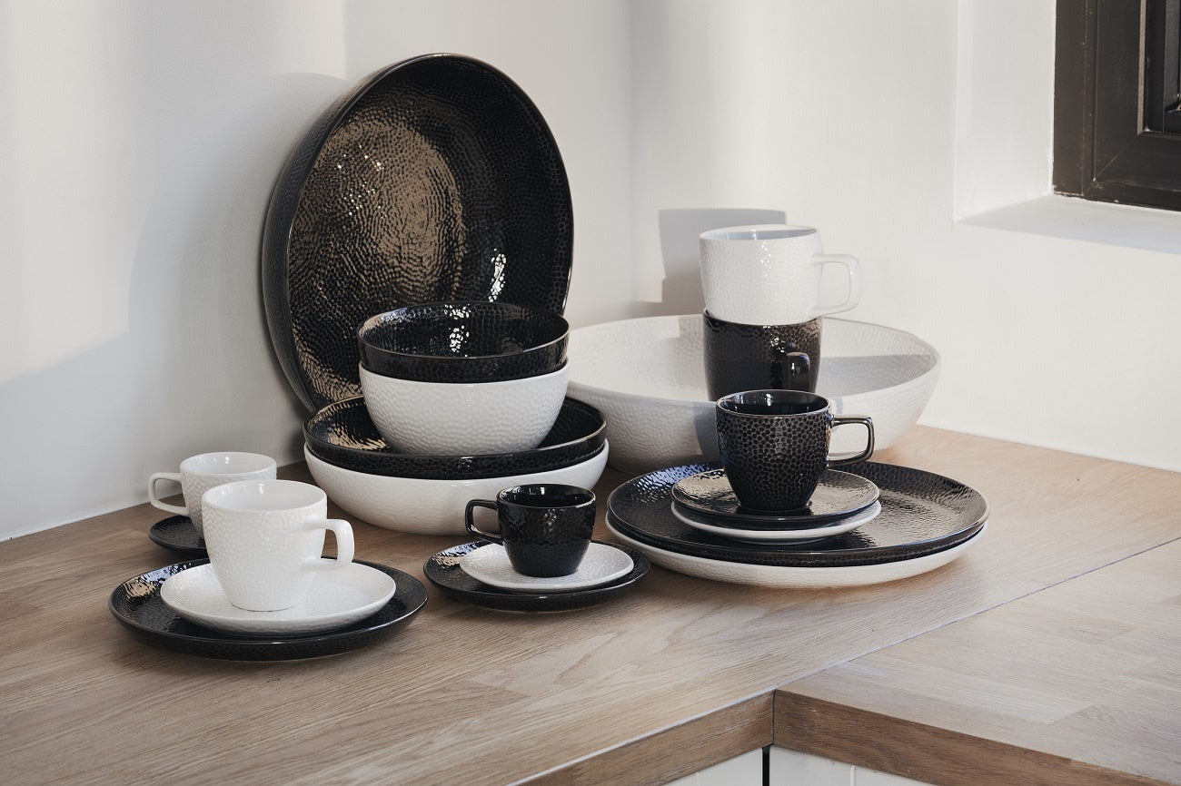 - Het MIELO servies van Salt&Pepper onderscheidt zich van andere collecties door het gehamerde patroon.