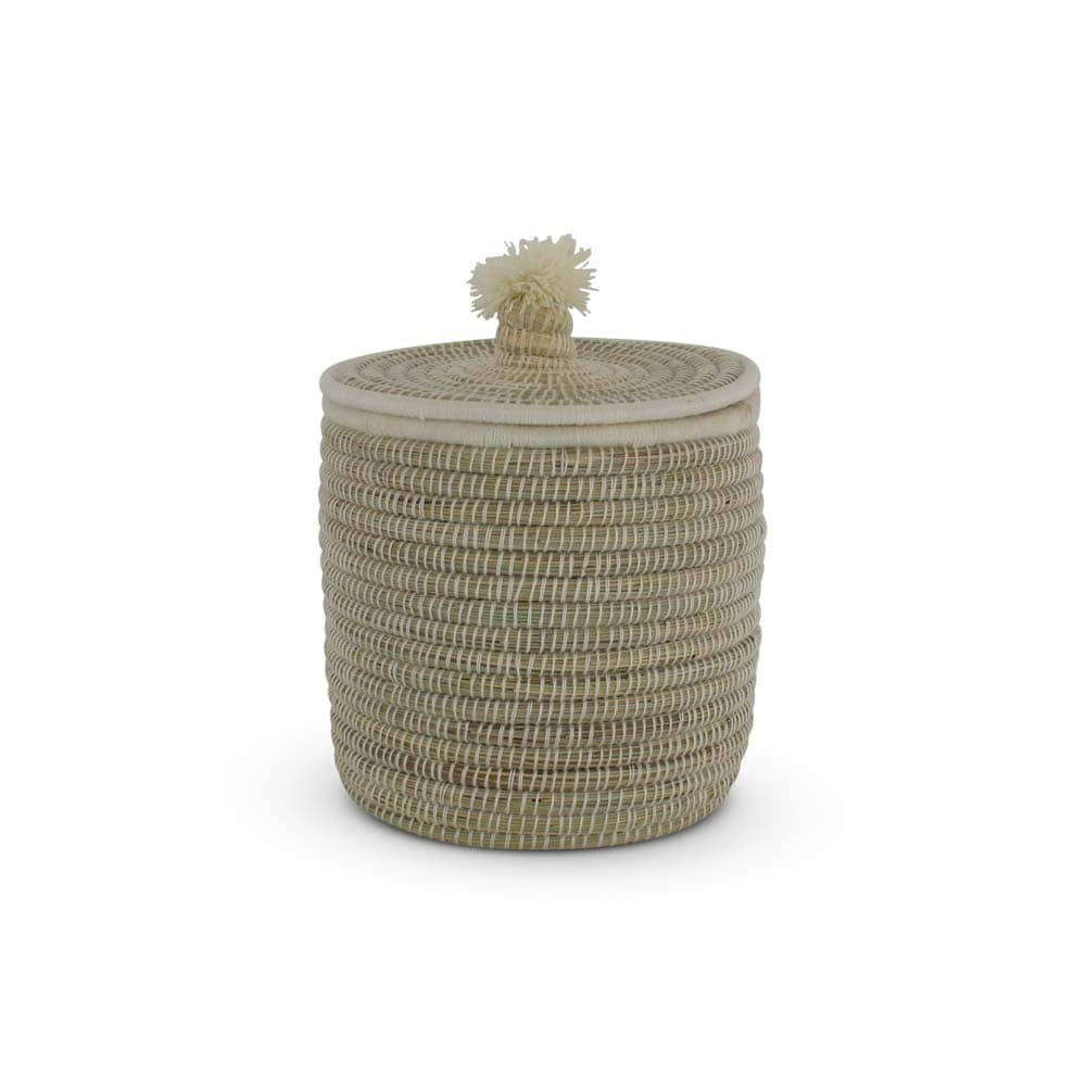 Safaary - Rieten Mand van Zeegras Natural-Wit Pompom-Ø 31 x 37cm