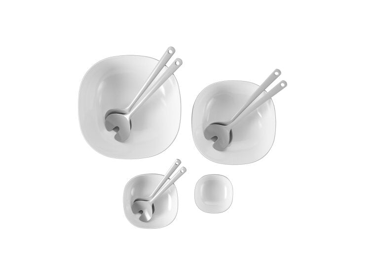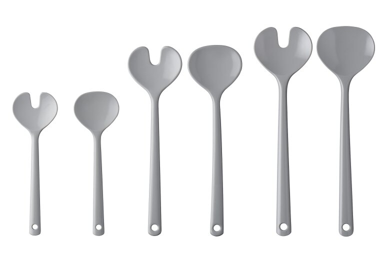 Slacouvert Synthesis in de kleur grey. Dit 2-delige saladebestek bestaat uit een kleine slalepel en slavork en past perfect bij de Synthesis saladeschalen. Het saladebestek is licht van gewicht en mag na gebruik in de vaatwasser.