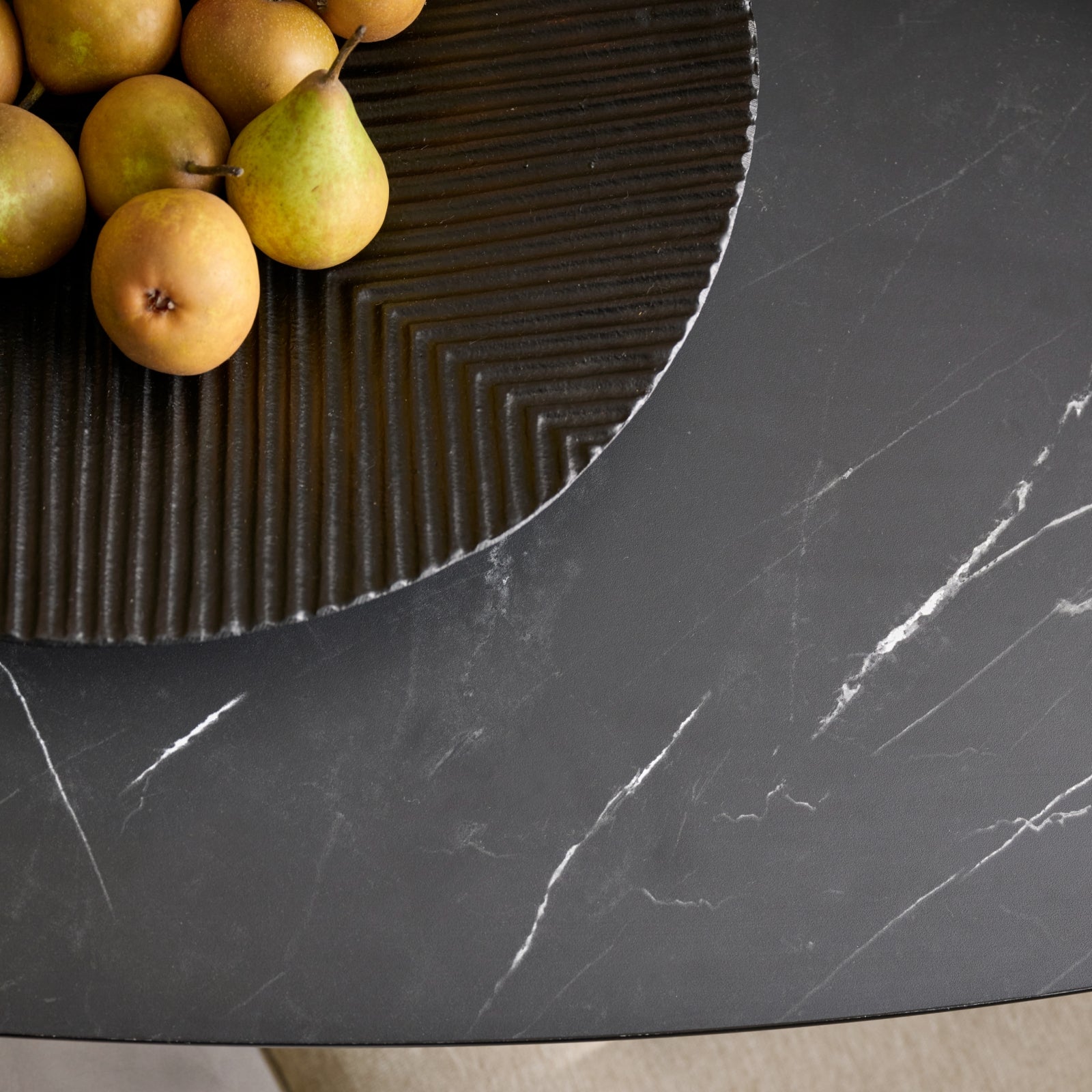 Salontafel Nyborg Lille is een elegante aanvulling op jouw interieur. Het organische design met een blad in zwarte marmerlook straalt zowel verfijning als moderniteit uit. Het blad is vervaardigd van MDF en afgewerkt met een HPL-finish in een zwart marmerpatroon. Deze afwerking is niet alleen mooi om te zien, maar ook zeer kras- en slijtvast. De slanke, schuine poten geven de tafel een strakke look. Omdat de onderkant van het blad, net als de poten, zwart is, heeft salontafel Nyborg Lille een gemakkelijk te combineren uitstraling. Perfect om je kopje koffie, tijdschriften of een mooie vaas bloemen op te plaatsen, maar vooral zeer stijlvol!- afmeting 75x44 cm en 38 cm hoog