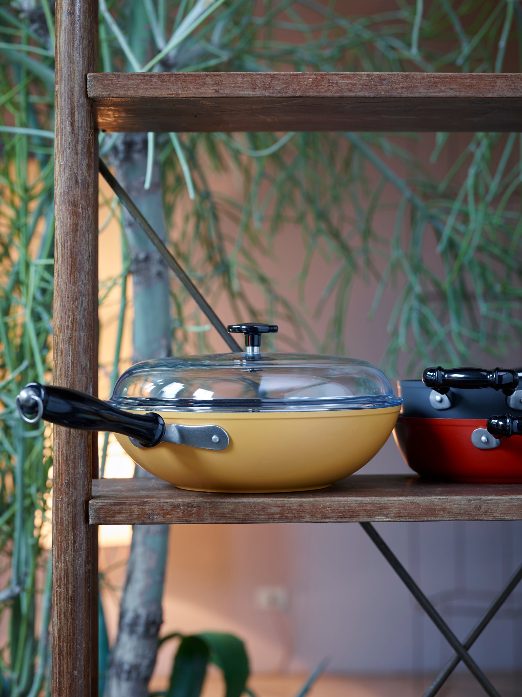 De Vintage kookpan heeft een design uit het verleden met de techniek uit het heden. De pan heeft een dubbele anti aanbaklaag gemaakt van Quarzo Nero en handvaten van Bakeliet. De pan is geschikt voor hoge temperaturen en is na gebruik eenvoudig te reinigen in de vaatwasser.