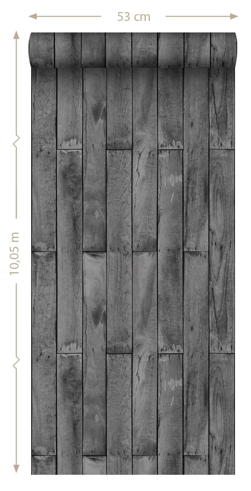- vind je in dit behang met houtlook in donkergrijs (935247) in de collectie Trends & More.