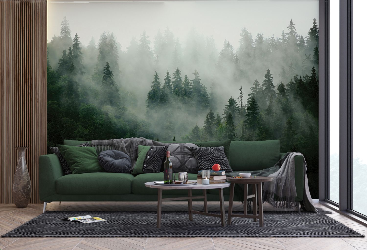 Sanders & Sanders fotobehang berglandschap met bomen groen - 3,75 x 2,