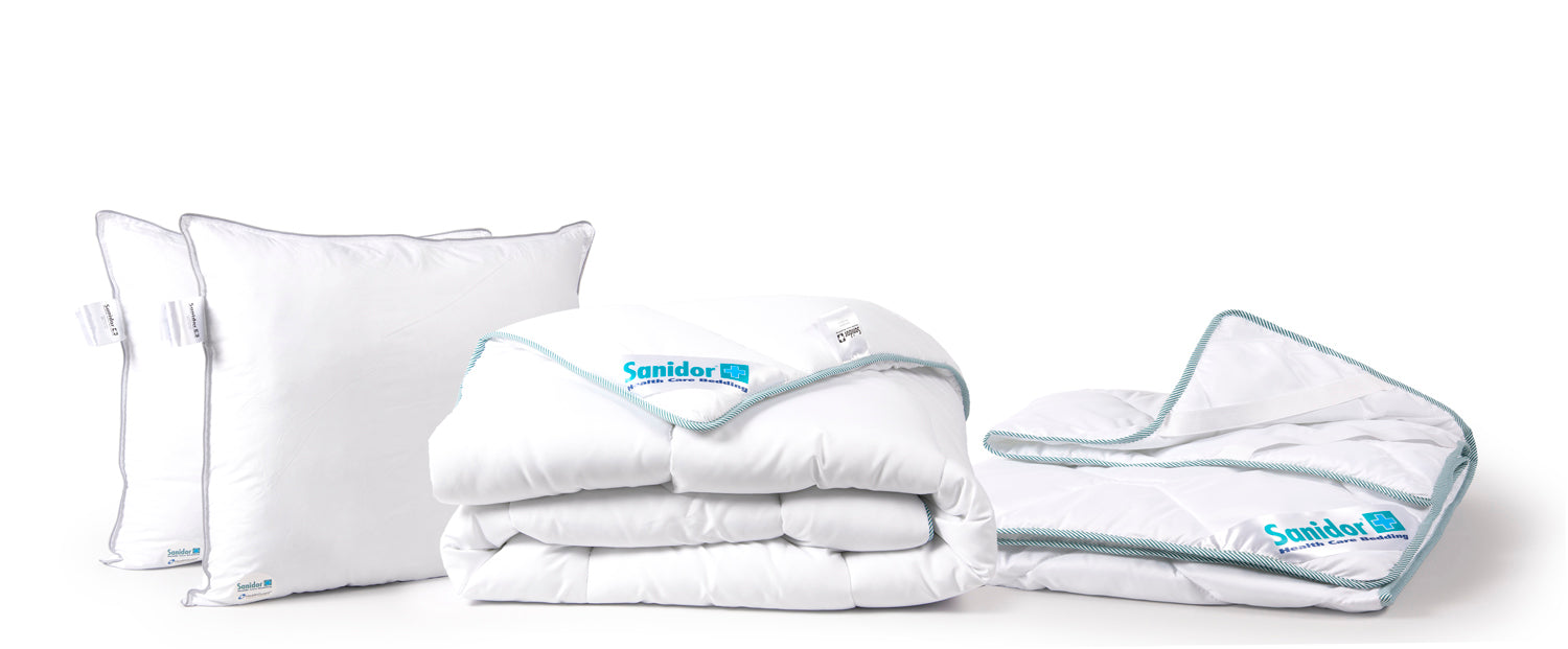 Sanidor Health Care allergievrij beddengoed voor een goede nachtrust zonder huisstofmijt. De bioactive vulling van het Sanidor dekbed voorkomt onaangename geurtjes, gaat bacterie overdracht tegen en heeft een permanente antimicrobiologische werking.