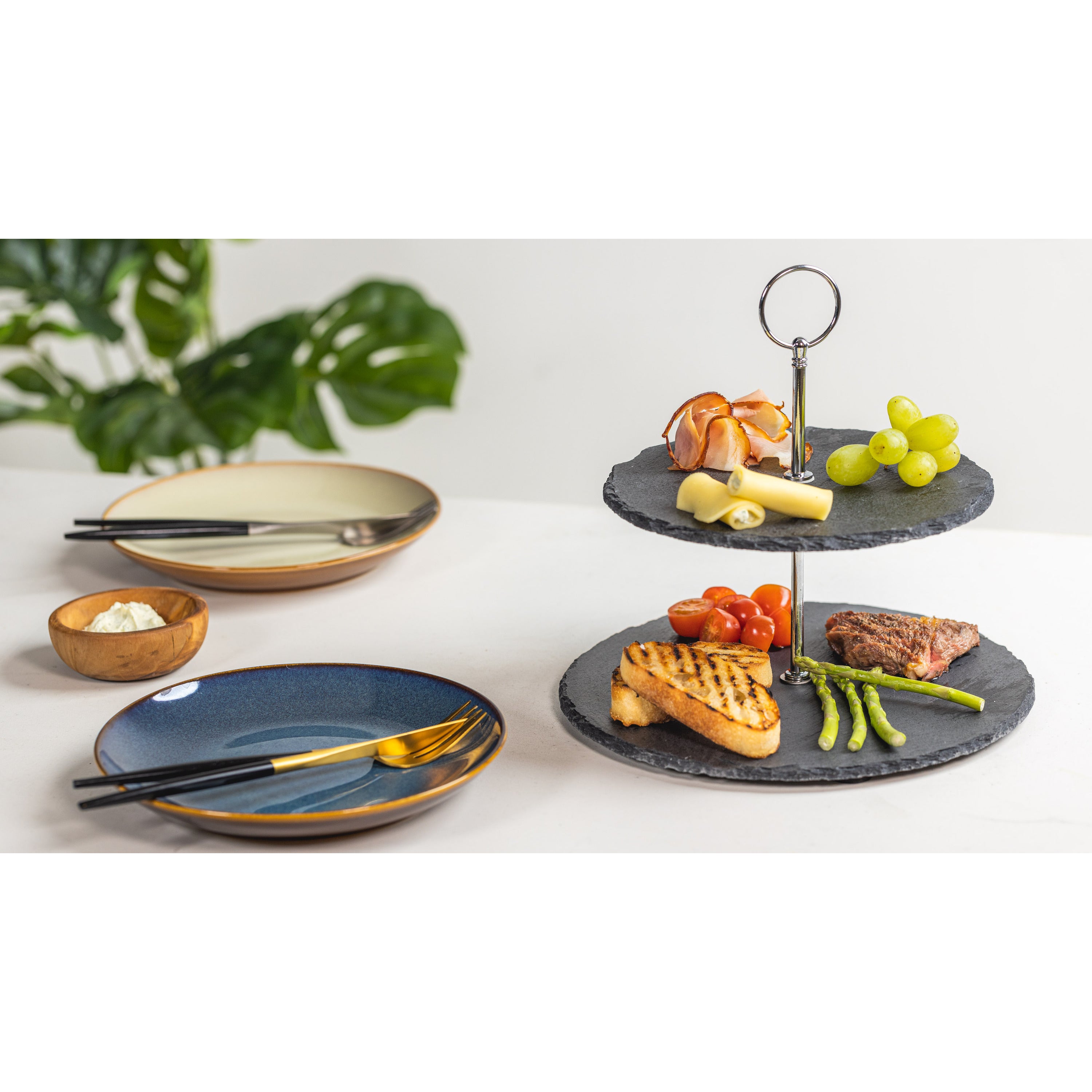Sareva Etagere - Serveertoren - Leisteen - ø 20 & 22 cm - 2 Laags