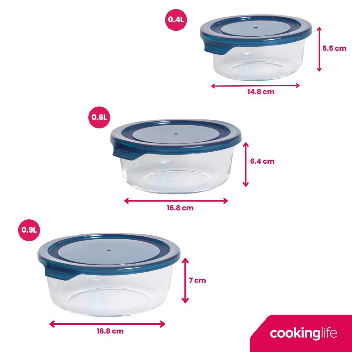 Sareva Glazen Vershoudbakje Cook & Fresh - Rond - 3-delig