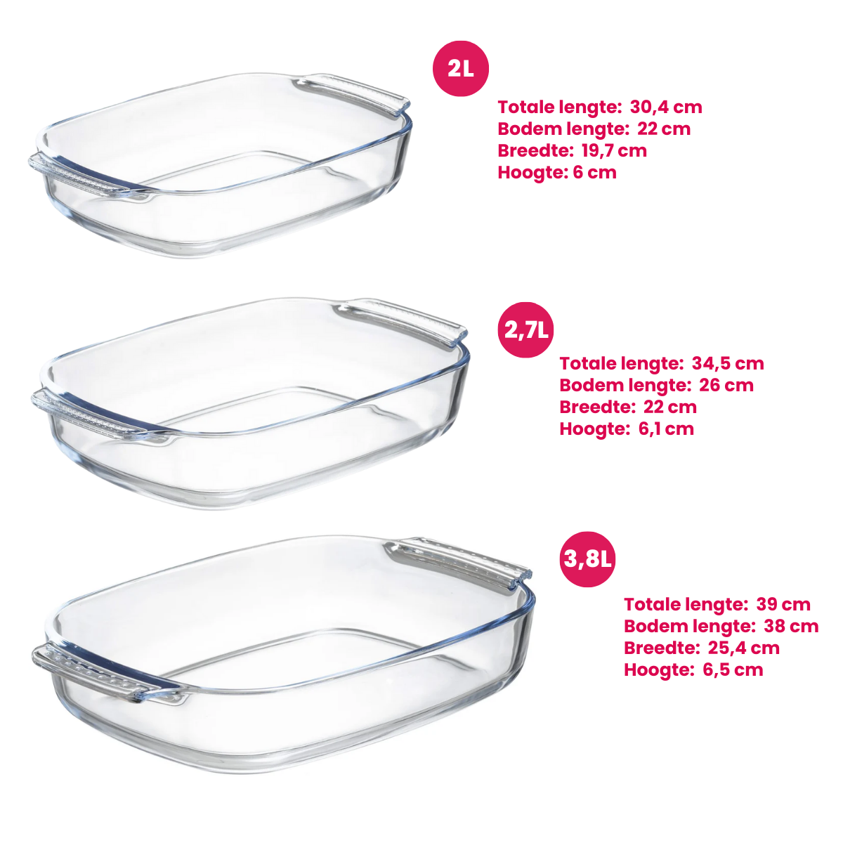 Sareva Ovenschalen - Hittebestendig glas - 2 | 2.7 | 3.8 liter - 3 delige set