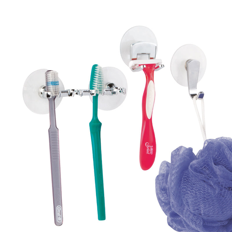 Scheermeshouder met Zuignap, RVS, Zilver - iDesign | Gia Heb je geen handige plek om je scheermesjes op te bergen en liggen deze altijd maar los door je badkamer of douche heen? Dan is deze scheermeshouder uit de Gia serie van iDesign de perfecte aanwinst voor je! De scheermeshouder is gemaakt van roestvrij staal en bevat een zuignap waarmee je de houder eenvoudig aan de muur bevestigd. De haken zijn zo ontworpen dat hier precies een scheermes in past zodat deze mooi, hangend opgeborgen kan worden en je deze altijd bij de hand hebt! Combineer deze scheermeshouder met de andere handige badkameraccessoires uit de Gia serie voor een altijd mooi opgeruimde badkamersetting!