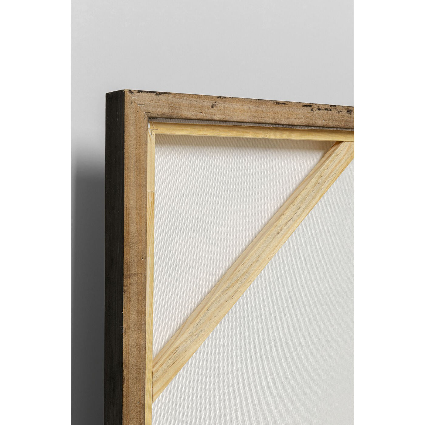 - Het schilderij is verticaal gemonteerd en heeft een frame van hout, gemaakt van dennenhout.