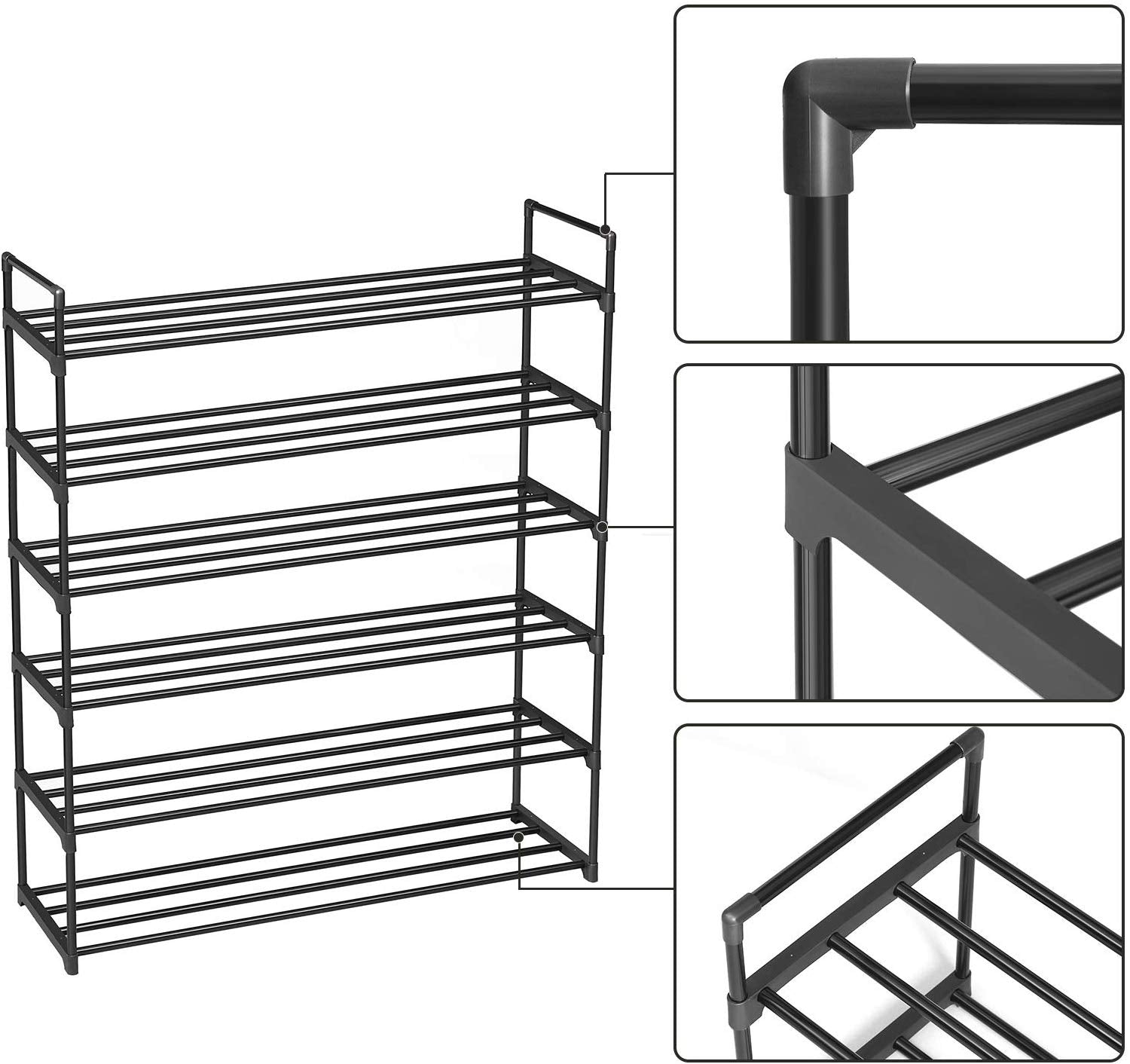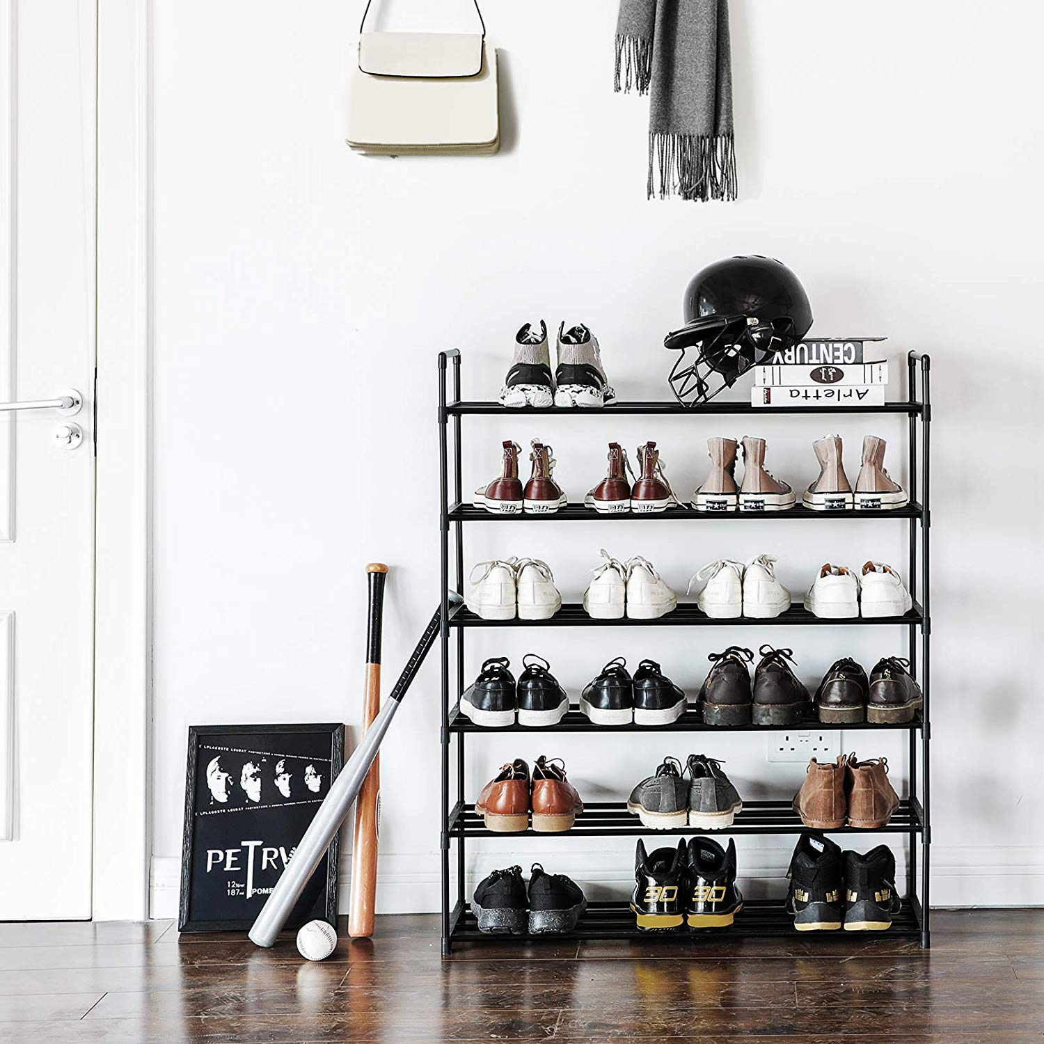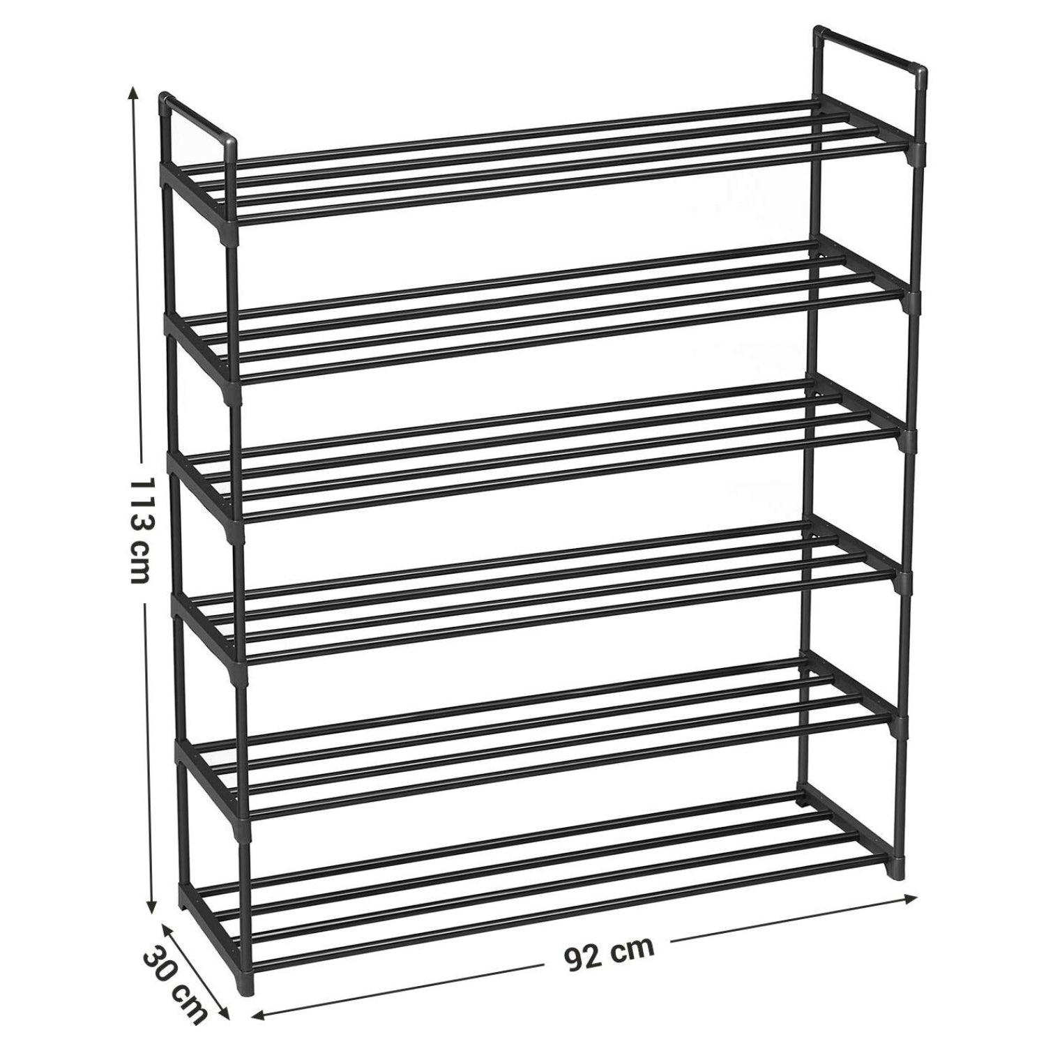 Dit eenvoudig, maar functionele schoenenrek zal zeker en vast een plaatsje vinden in jouw woning! Het rekje is bovendien eenvoudig te monteren en gemakkelijk aan te passen. Als u tijdens de montage een of twee lagen weglaat, is er ook ruimte voor uw laarzen of hoge schoenen. Heb je zoveel schoenen dat één zo'n rekje niet voldoende is? Plaats dan 2 rekjes op elkaar en bekom zo een rek met 12 lagen! Super handig, niet?