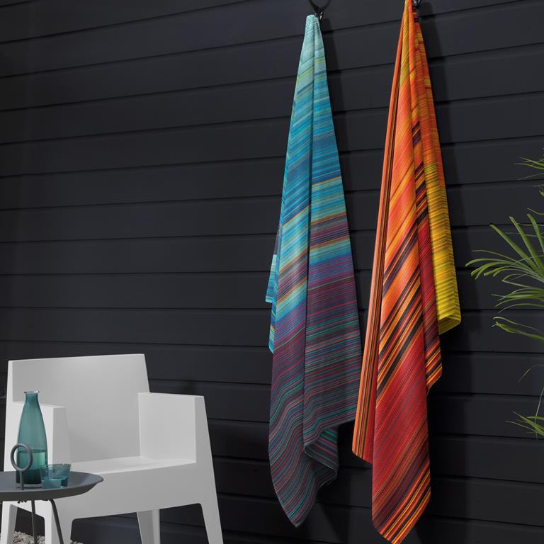 Strandlaken Sunset Ga op je strepen staan met dit vrolijke strandlaken van Seahorse! Het Sunset laken heeft een fantastisch gekleurd streepdessin waarmee je de zomer laat schitteren! Bovendien is het strandlaken extra groot, zodat je je er helemaal in kunt wikkelen. Je kunt de Sunset wassen op 60 graden en na gebruik kan hij op lage temperaturen in de droogtrommel. Let op: uit hygiënische overwegingen kan badtextiel na gebruik niet worden geretourneerd.