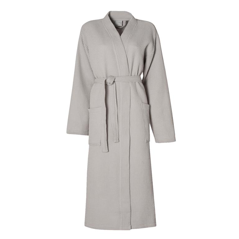 Eerst wassen dan passen De Waffle Kimono badjas is gemaakt van luxe, licht katoen dat luchtig aanvoelt. Door deze speciale structuur valt de badjas groot uit en moet hij eerst gewassen worden voordat hij gedragen kan worden. Na het wassen heeft de Seahorse badjas pas de juiste maat en pasvorm. In de handleiding staat een tabel met de maten van de badjas na het wassen.