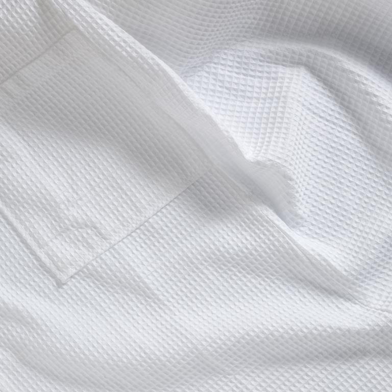 Eerst wassen dan passen De Waffle Kimono badjas is gemaakt van luxe, licht katoen dat luchtig aanvoelt. Door deze speciale structuur valt de badjas groot uit en moet hij eerst gewassen worden voordat hij gedragen kan worden. Na het wassen heeft de Seahorse badjas pas de juiste maat en pasvorm. In de handleiding staat een tabel met de maten van de badjas na het wassen.