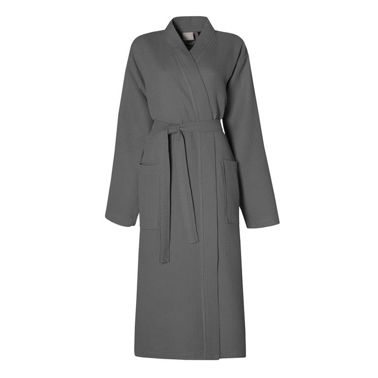 Eerst wassen dan passen De Waffle Kimono badjas is gemaakt van luxe, licht katoen dat luchtig aanvoelt. Door deze speciale structuur valt de badjas groot uit en moet hij eerst gewassen worden voordat hij gedragen kan worden. Na het wassen heeft de Seahorse badjas pas de juiste maat en pasvorm. In de handleiding staat een tabel met de maten van de badjas na het wassen.