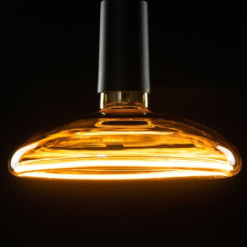 Deze G200 reflector floating lamp E27 verbruikt 6 Watt en geeft 280 Lumen aan mooi warm wit licht (1900 Kelvin). De kleur van het glas is smoke en de breedte is 20 cm, de totale hoogte is 11 cm.